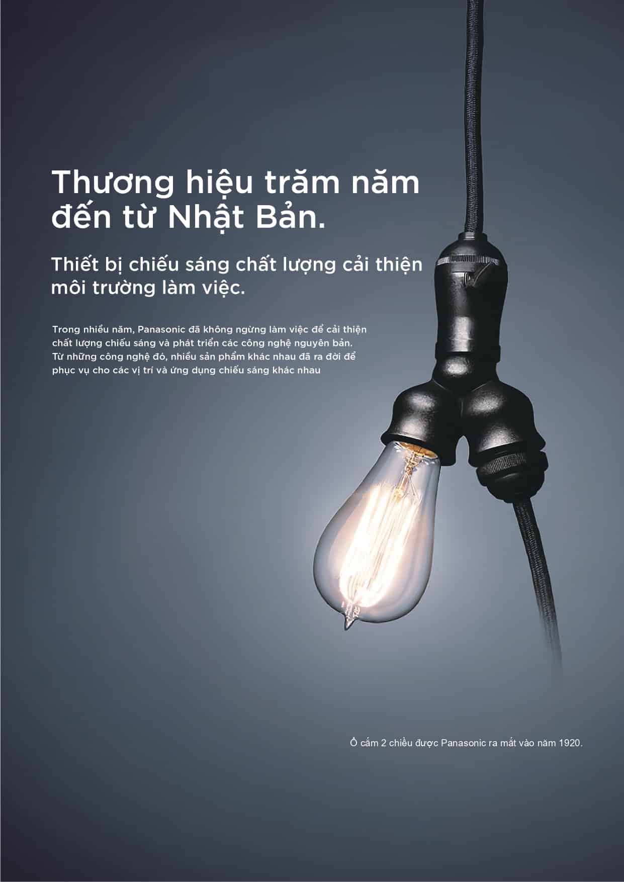 Có thể nói Panasonic là thương hiệu trăm năm đến từ Nhật Bản – với những thiết bị chiếu sáng chất lượng giúp cải thiện môi trường làm việc và sinh hoạt. Trong nhiều năm Panasonic đã không ngừng làm việc để cải thiện chất lượng chiếu sáng và phát triển các công nghệ nguyên bản. Từ những công nghệ đó, nhiều sản phẩm khác nhau đã ra đời để phục vụ cho các vị trí và ứng dụng chiếu sáng khác nhau.