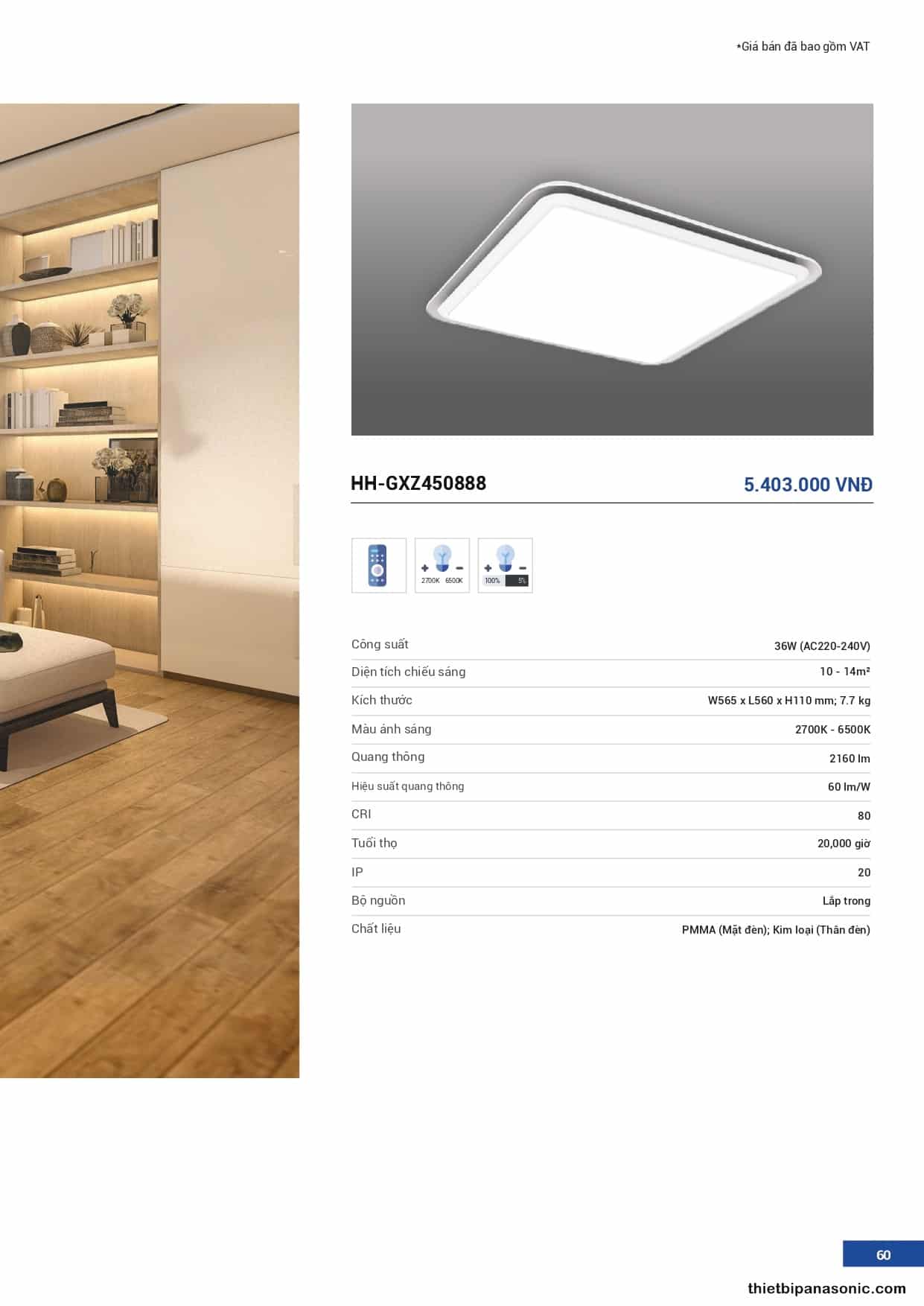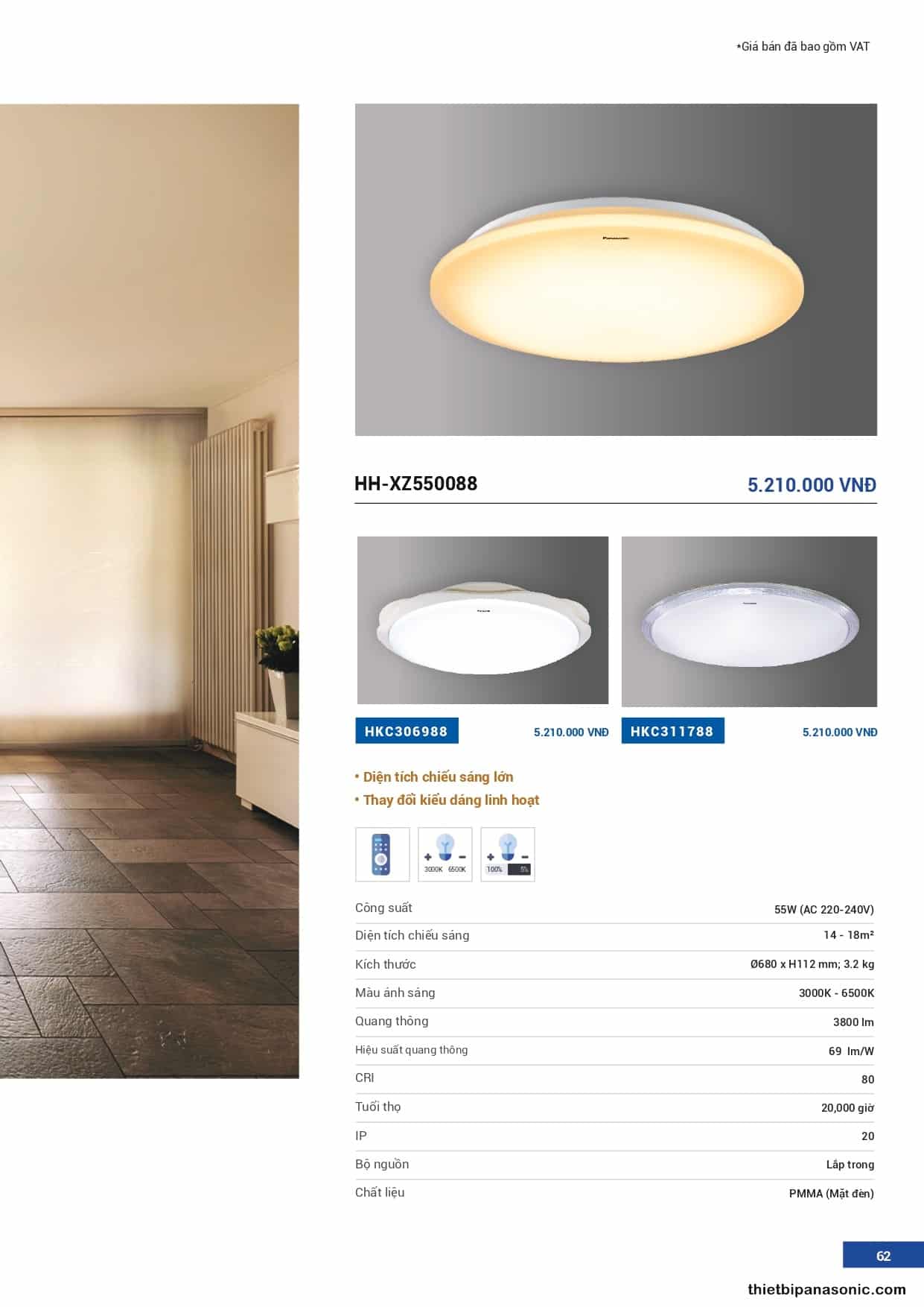 | 1 | Đèn trần Panasonic | LED Ceiling Light | 55 |