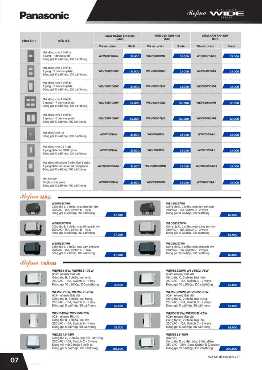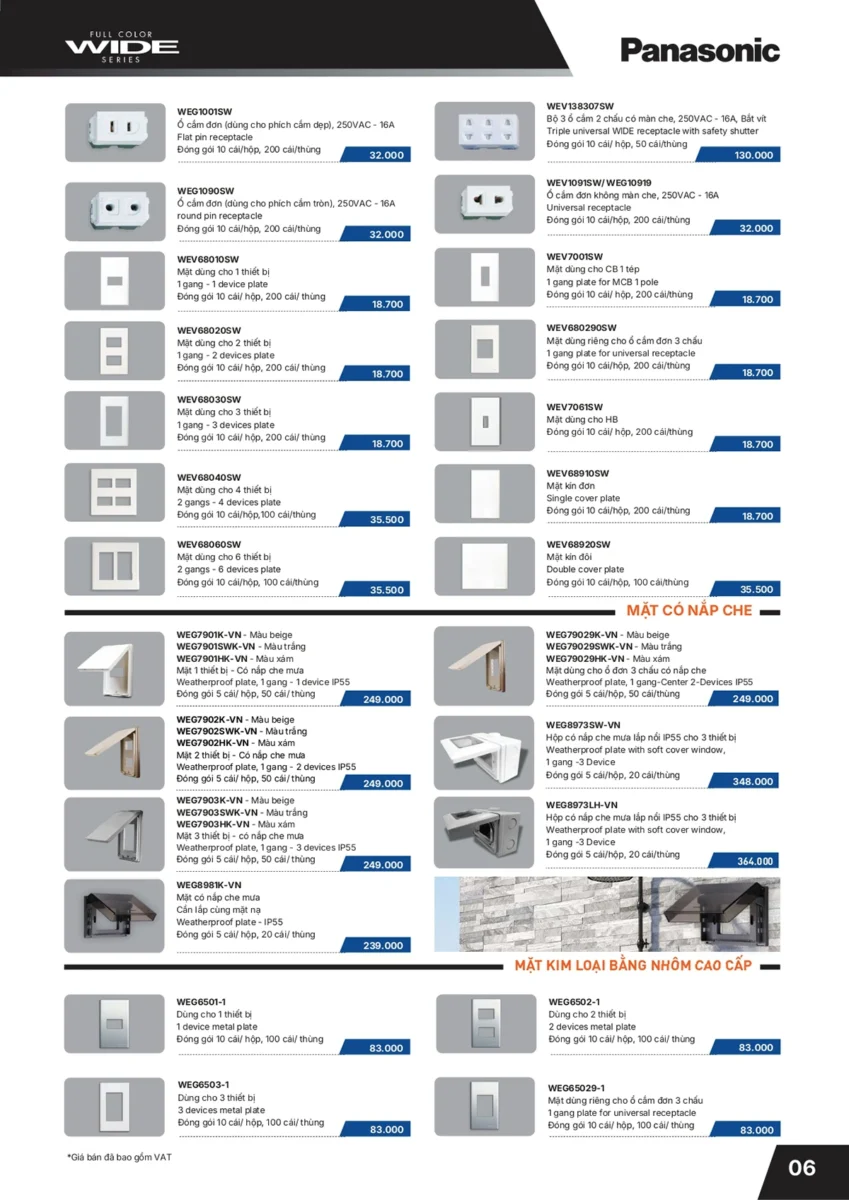 CATALOGUE BẢNG GIÁ THIẾT BỊ ĐIỆN PANASONIC 2026 MỚI NHẤT