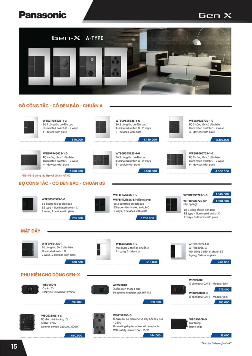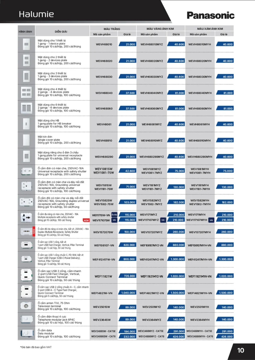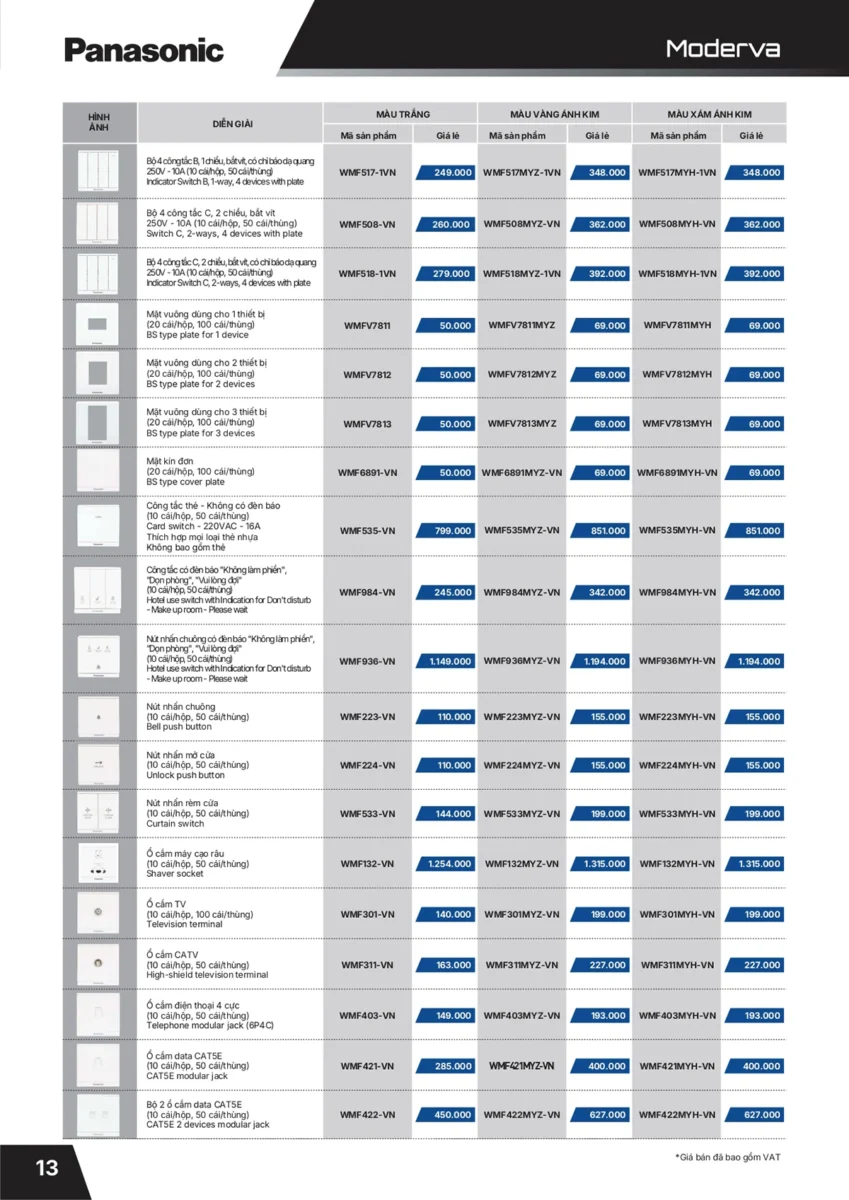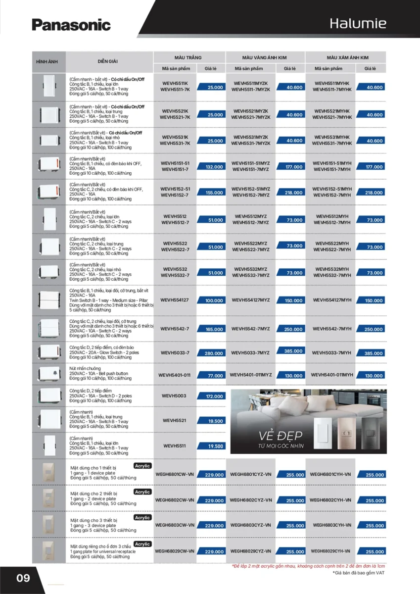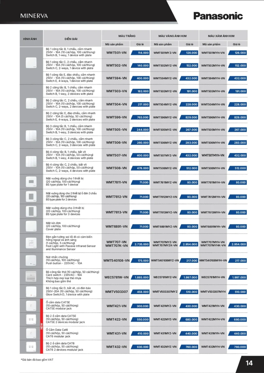 Bảng thiết bị điện Panasonic 2022