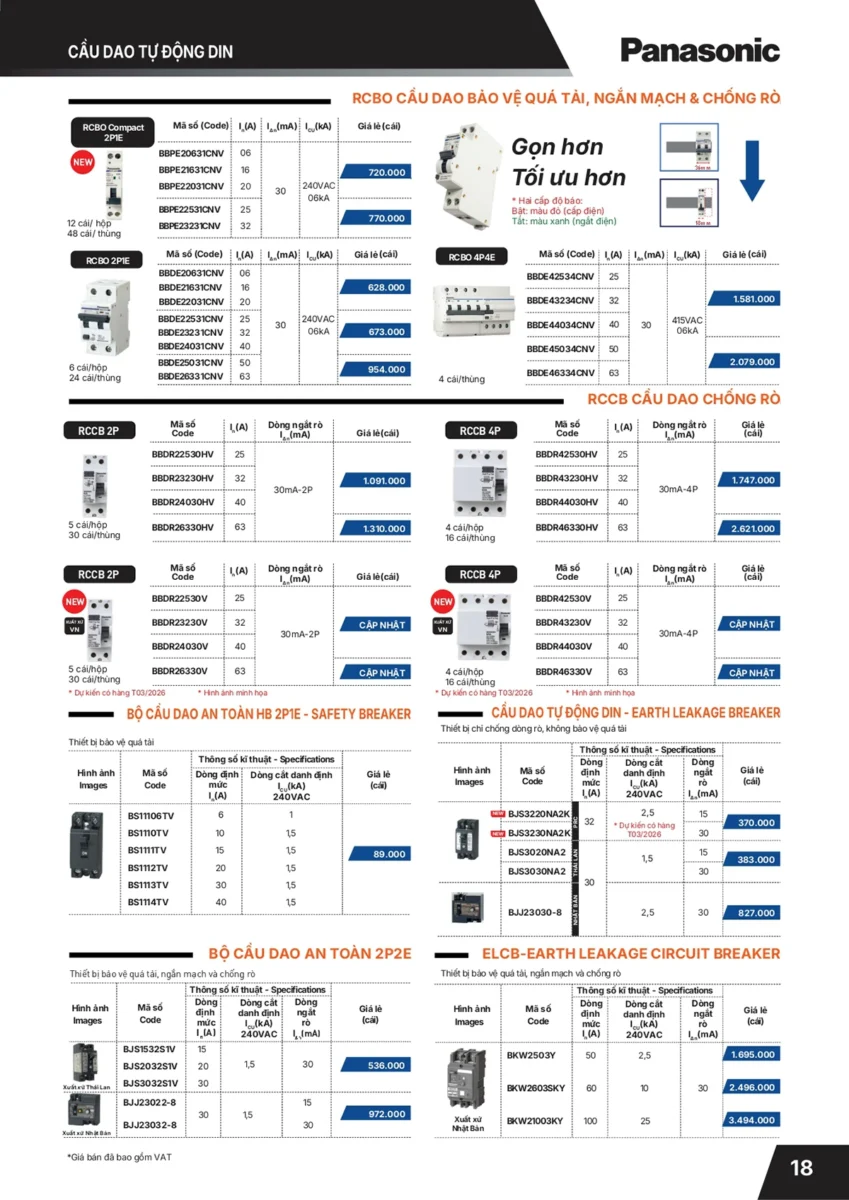 Bảng giá Aptomat, Cầu dao, CB Panasonic 2026