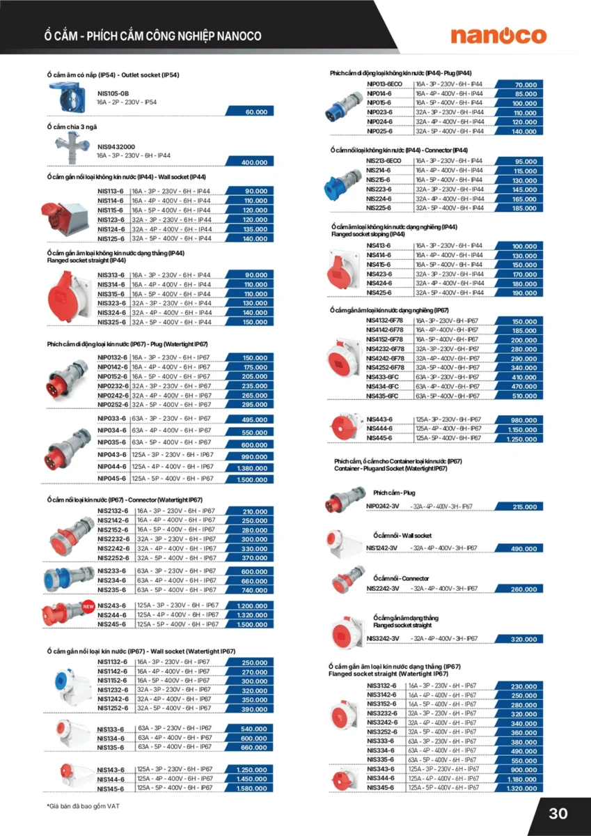 Bảng giá Phích cắm ổ cắm công nghiệp Panasonic gồm các loại khác nhau là: