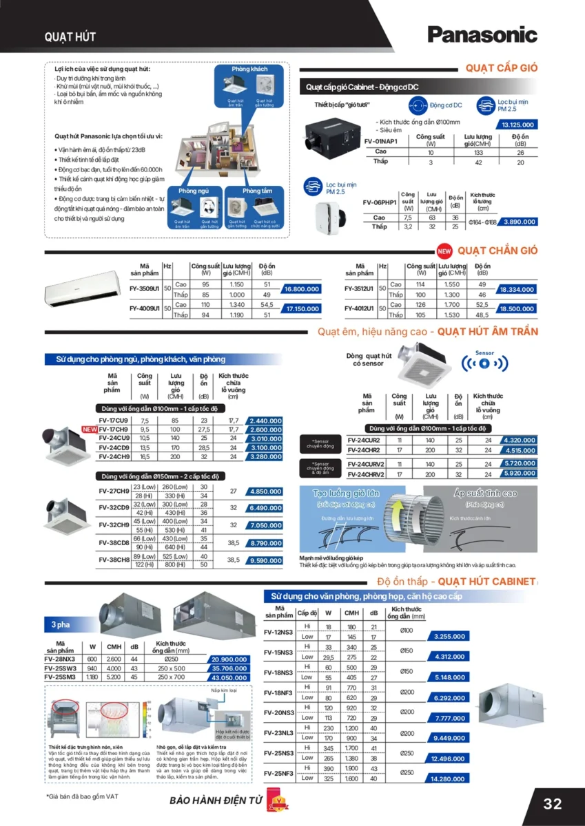 3. Quạt hút Panasonic (quạt hút âm trần Panasonic, gắn tường, quạt hút mùi nhà vệ sinh,…)  Trang 30-33