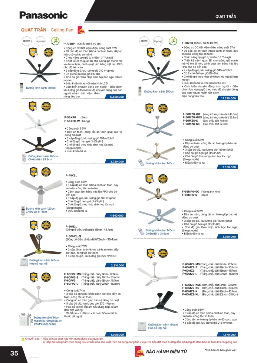 Quạt trần Panasonic Trang 34-37