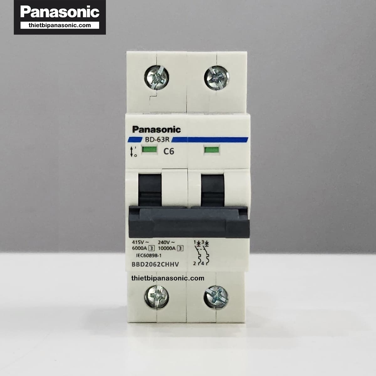 MCB Panasonic BBD2062CHHV là cầu dao tự động DIN giúp bảo vệ quá tải và ngắn mạch được nhiều khách hàng sử dụng. MCB 2 pha 6A 10kA Panasonic với nhiều tính năng vượt trội đảm bảo an toàn cho người sử dụng cũng như các vật dụng khác trong gia đình để khi có chập điện, cầu chì đứt, mạch điện hở, không xảy ra cháy nổ. Cùng thietbipanasonic tìm hiểu kỹ hơn về sản phẩm này ngay bây giờ nhé!