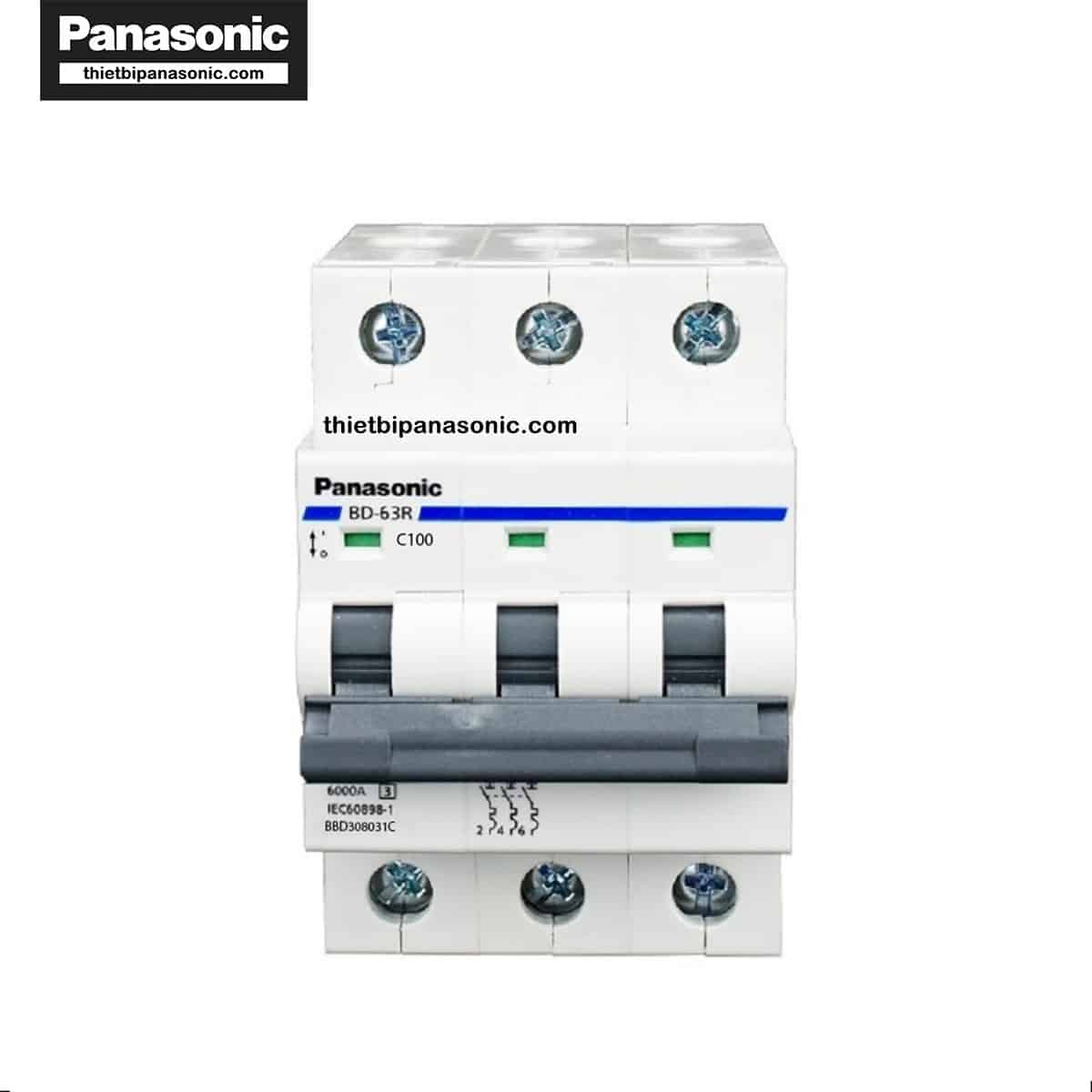 - MCB 3P 100A 10kA Panasonic BBD31003CHV được sản xuất trên dây chuyền hiện đại đạt tiêu chuẩn IEC của Châu Âu giúp đảm bảo an toàn trong quá trình sử dụng.