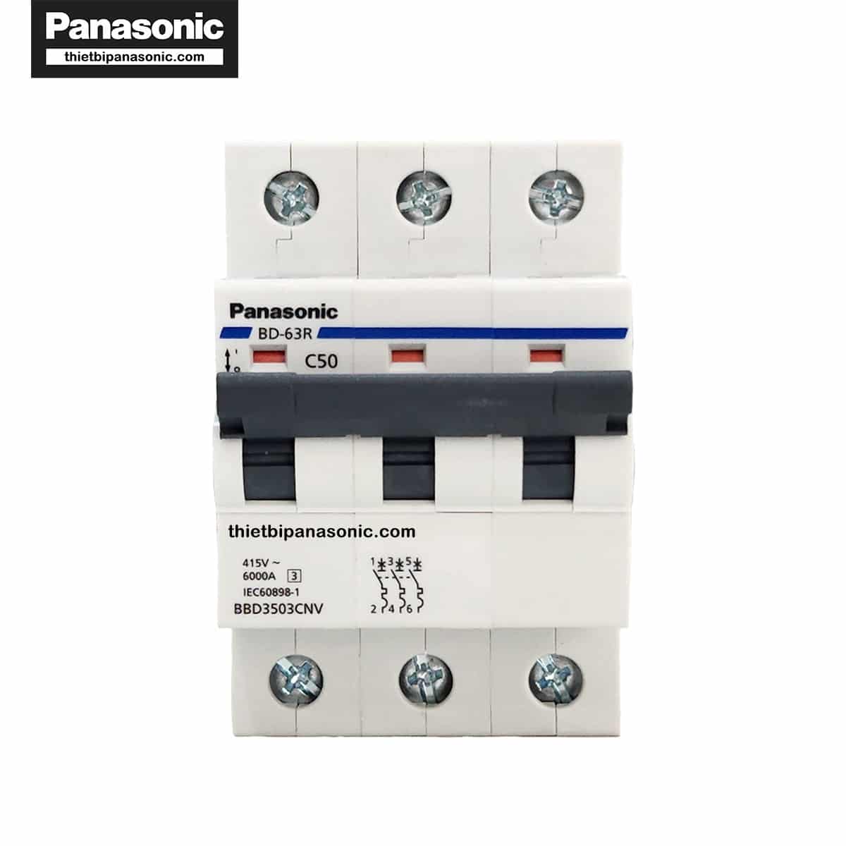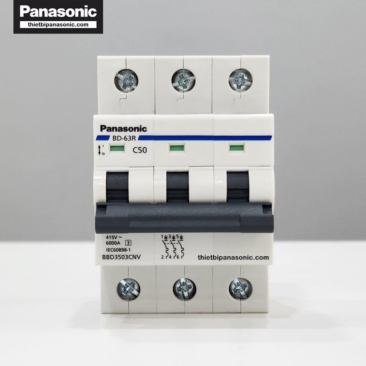 • MCB 3P 50A 6kA Panasonic BBD3503CNV được sản xuất trên dây chuyền hiện đại đạt tiêu chuẩn IEC của Châu Âu giúp đảm bảo an toàn trong quá trình sử dụng.