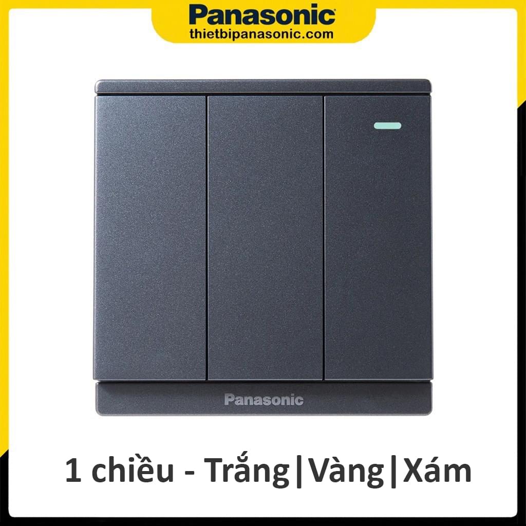 Bộ 3 công tắc 1 chiều Panasonic Moderva màu xám ánh kim có chỉ báo dạ quang WMF515MYH-1VN