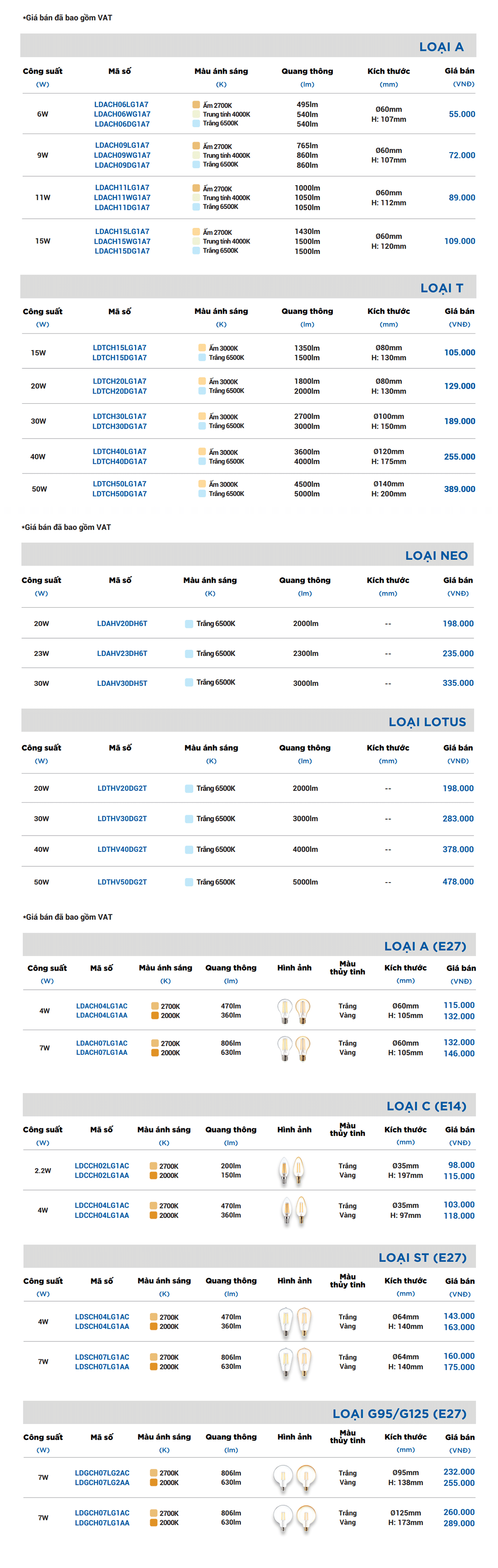 Bảng giá bóng đèn LED Bulb Panasonic mới nhất