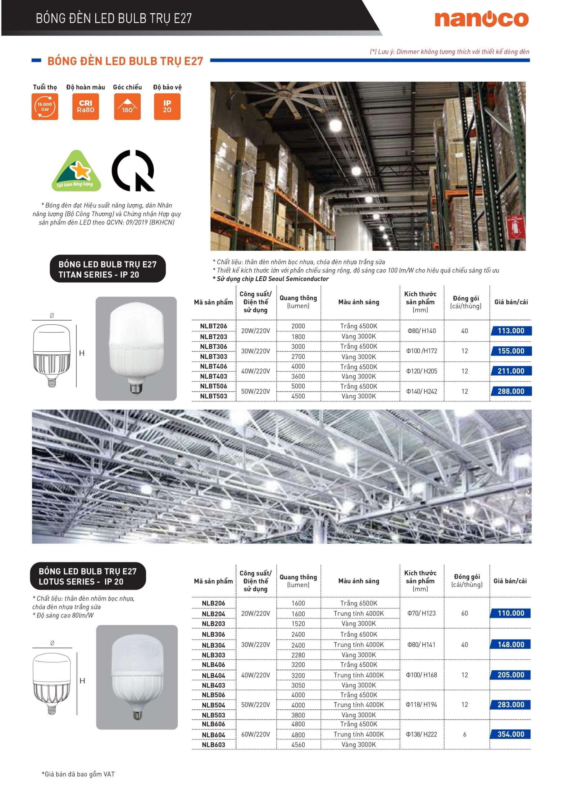 Bóng đèn LED đui E27 Nanoco