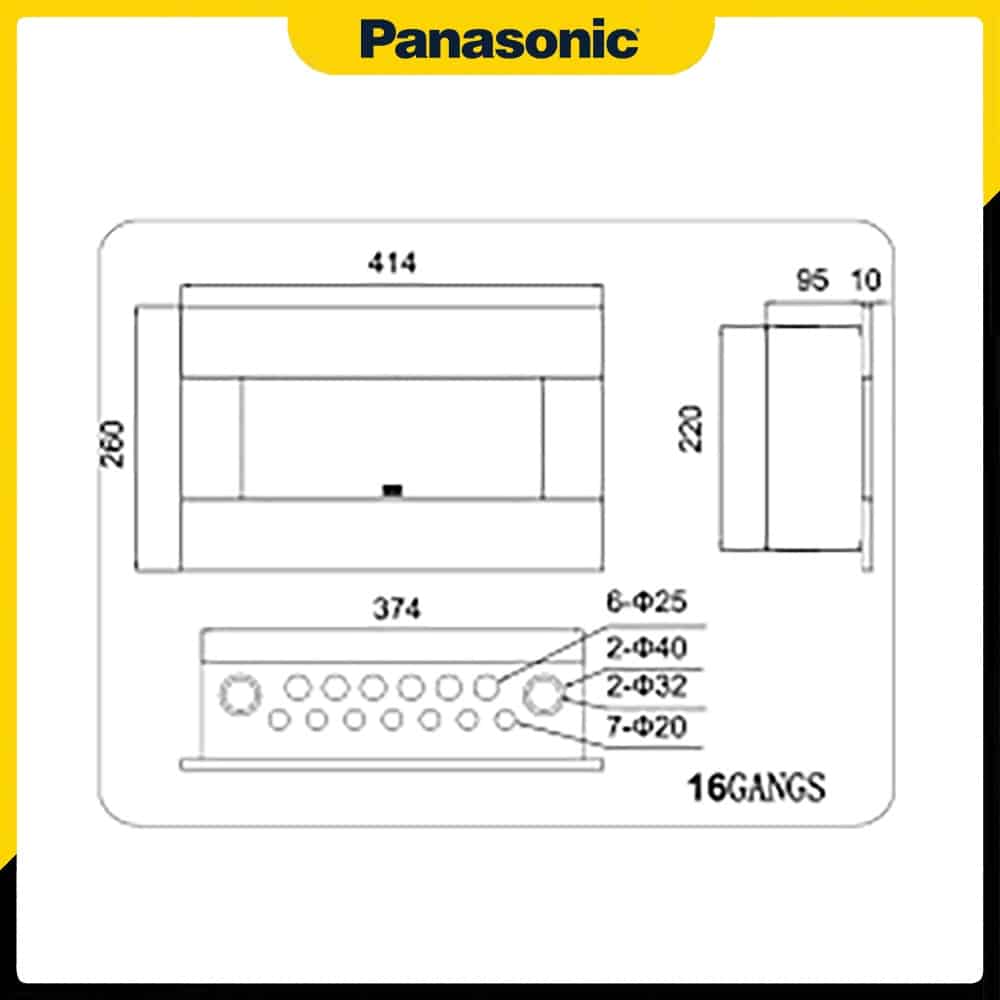 Bản vẽ kích thước của tủ điện Panasonic 16 đường BQDX16G11AV