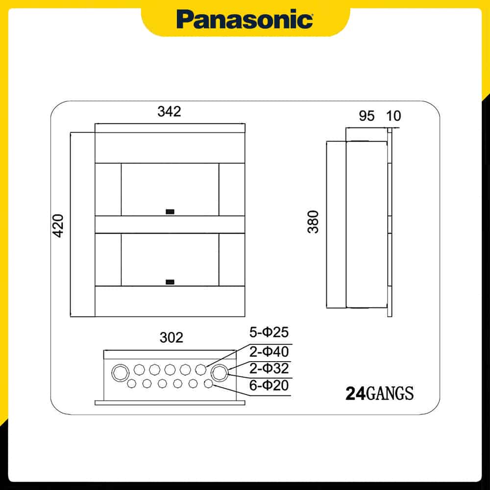 Tủ điện âm tường Panasonic 24 Module BQDX24G11AV được thiết kế sử dụng trong nhà để phân phối điện cho tải trọng công suất lớn và tối ưu nhất, chi tiết thông số kỹ thuật được thể hiện dưới đây: