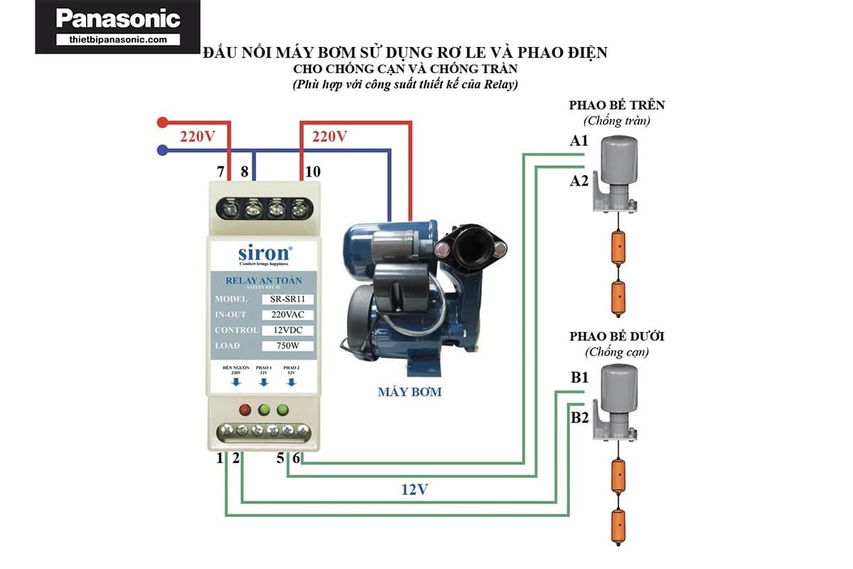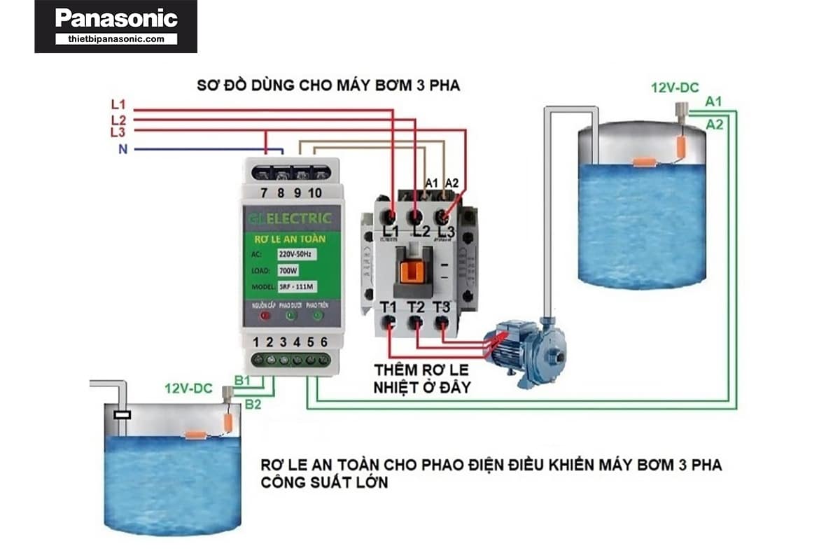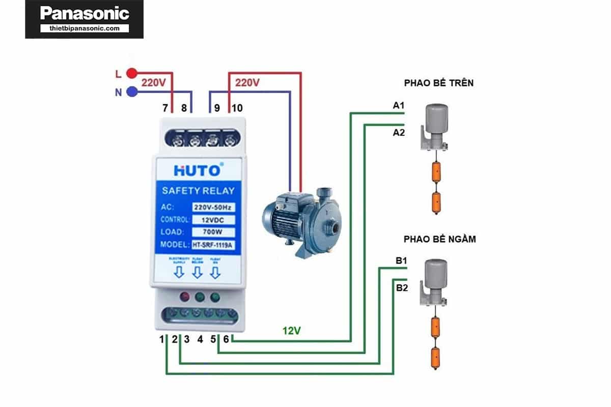 Dưới đây là sơ đồ lắp đặt rơ le an toàn cho phao điện: