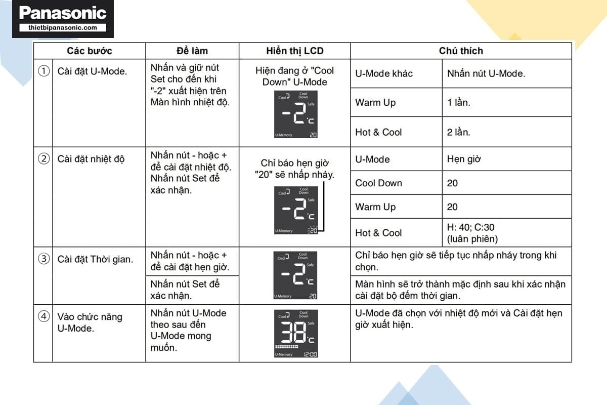 - Nhiệt độ U-Mode và cài đặt hẹn giờ.
