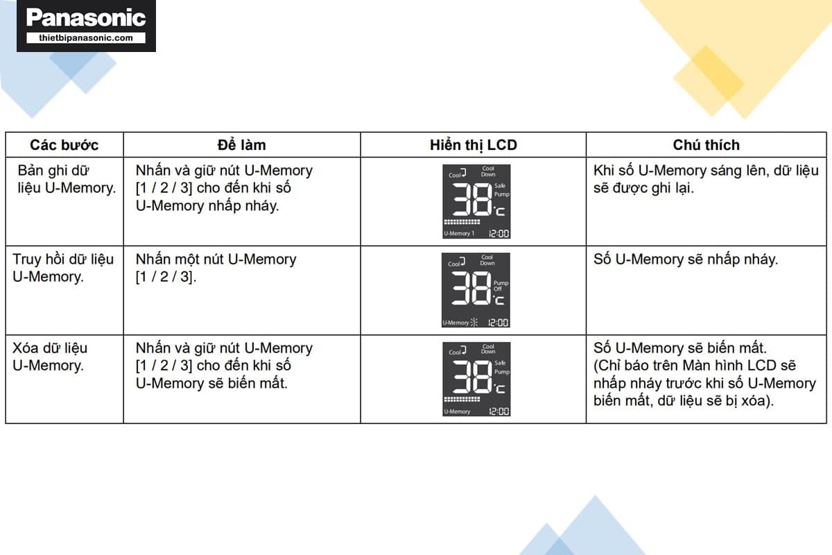- Có thể chọn chức năng Bộ nhớ U-Memory bằng cách nhấn nút U-Memory