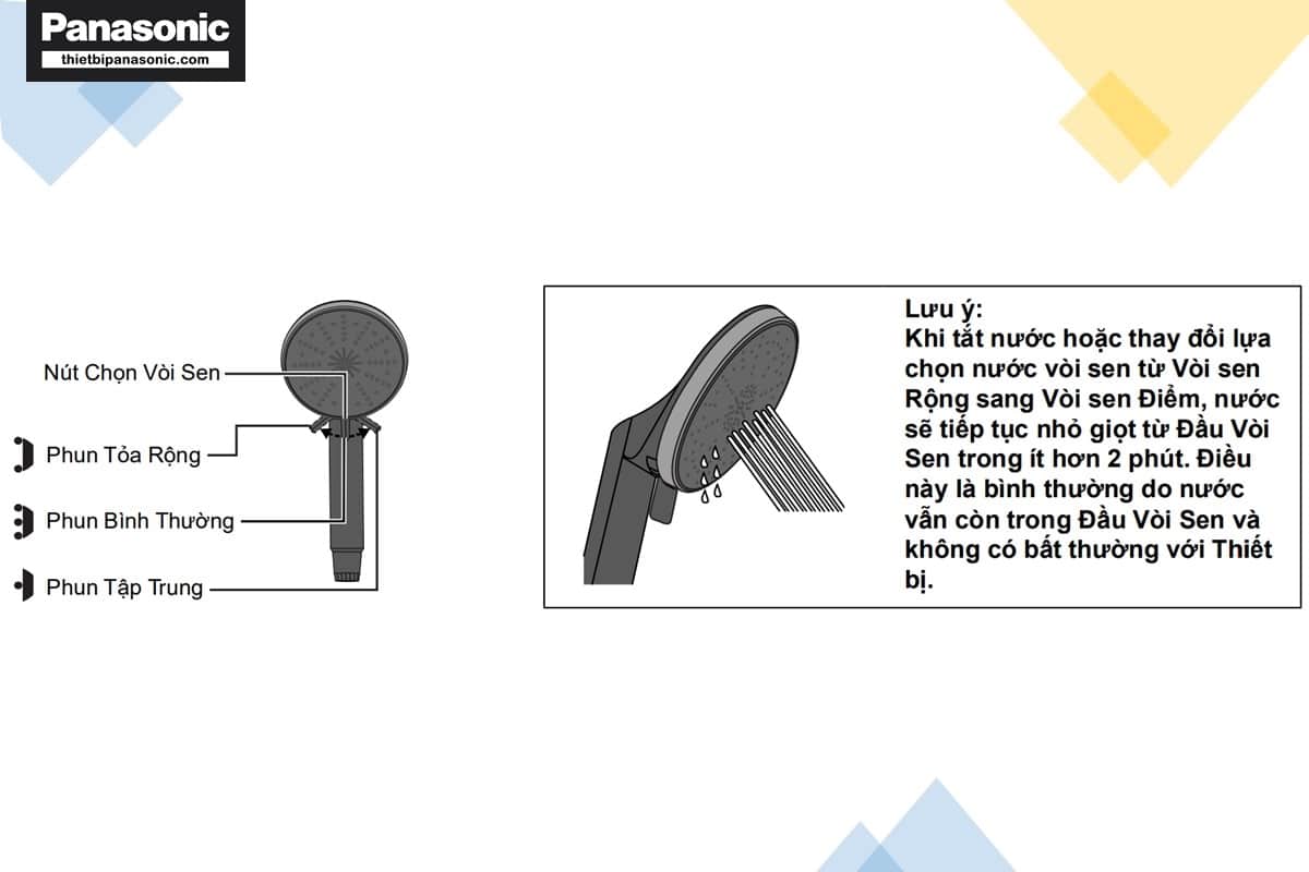 - Nước sẽ chảy ra từ Đầu Vòi Sen. Đồng thời,