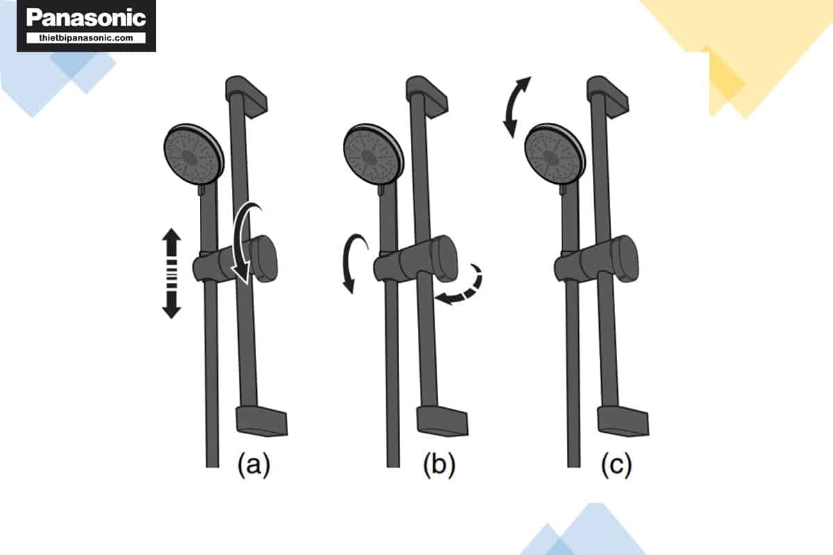 - Góc nghiêng của Đầu vòi sen có thể điều chỉnh bằng cách đẩy Đầu vòi sen lên cao hoặc xuống thấp