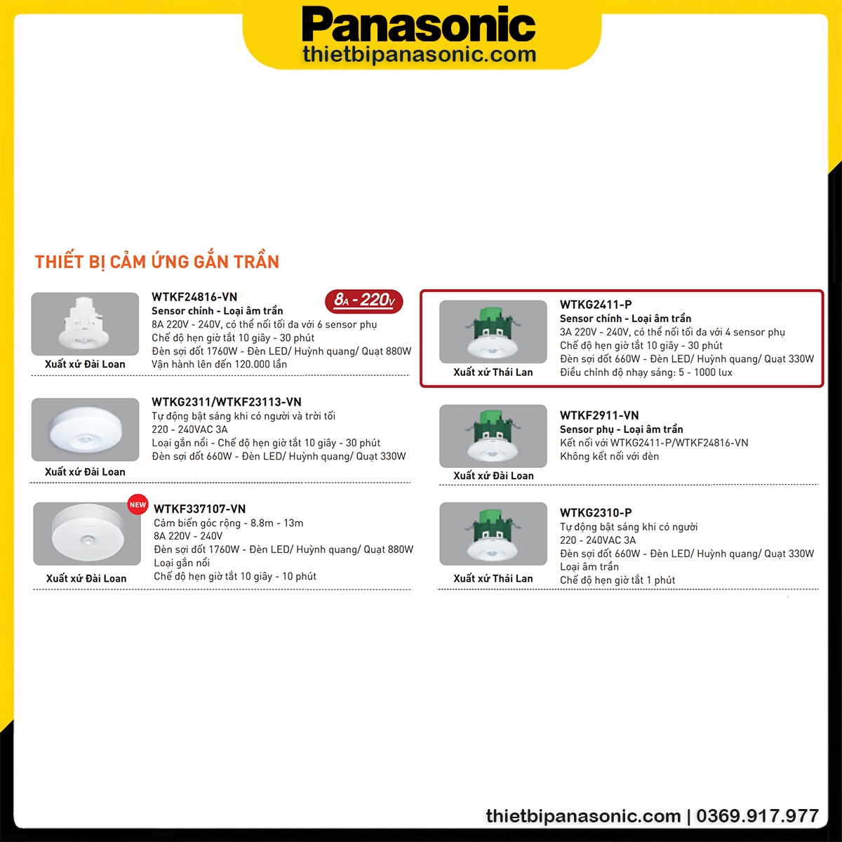 Cảm biến hồng ngoại Panasonic WTKG2411-P | Sensor chính, âm trần
