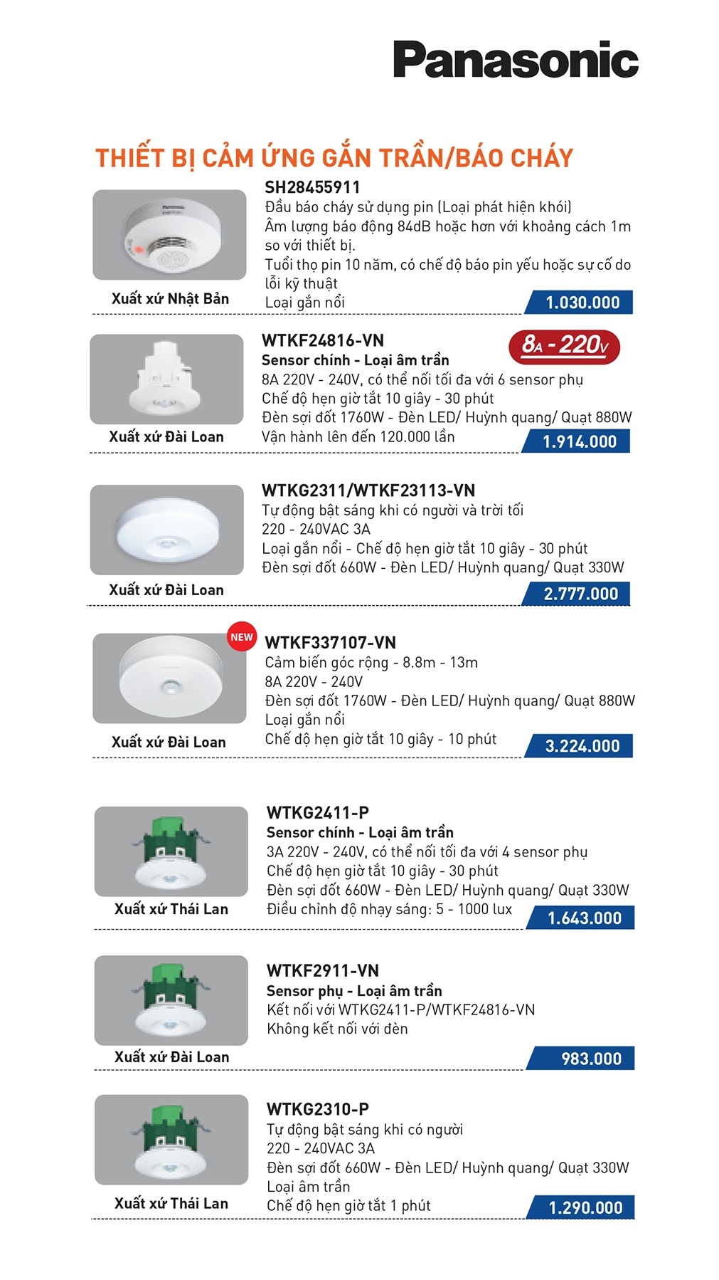 Bảng giá Thiết bị cảm biến gắn trần Panasonic
