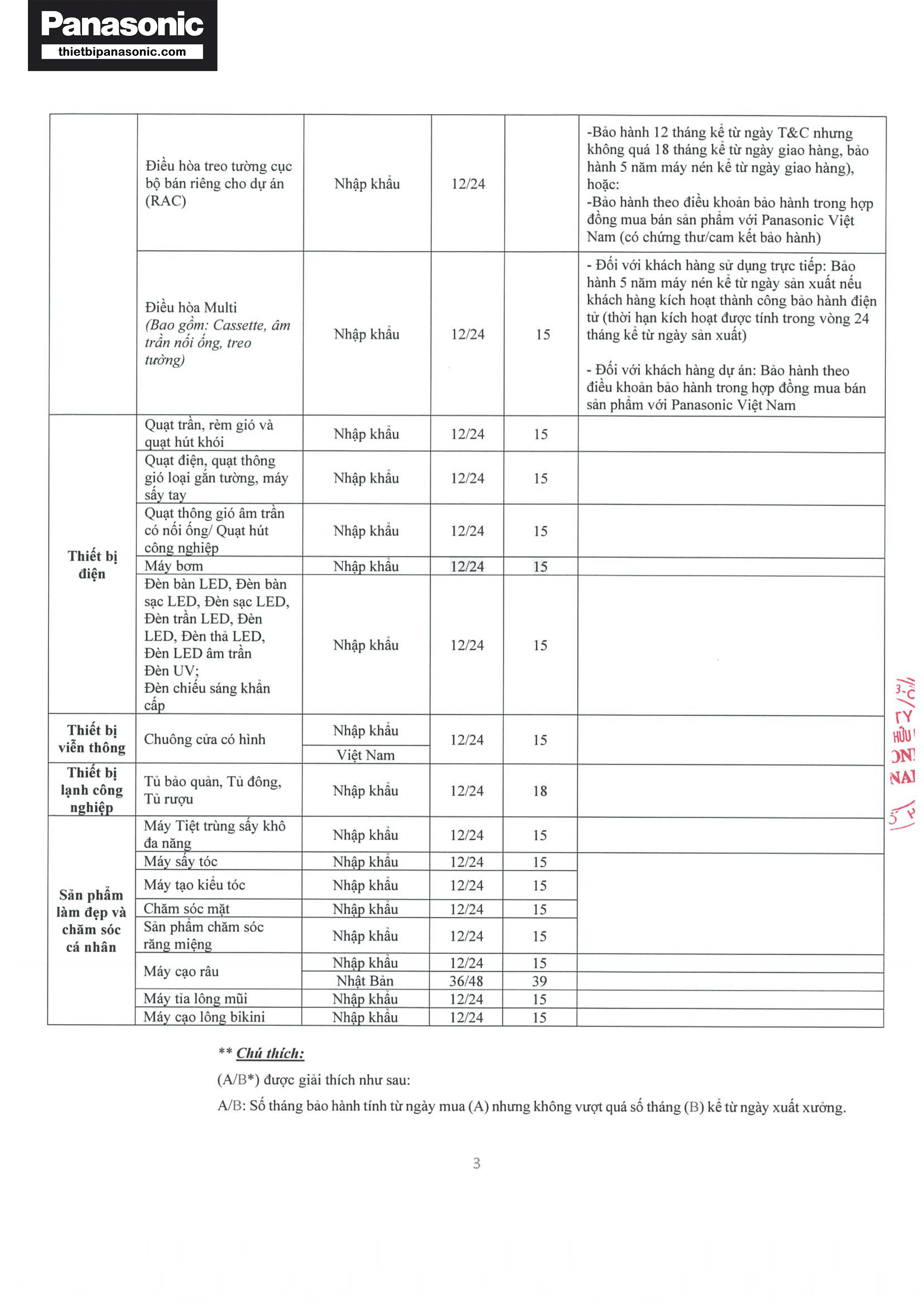 Chính sách bảo hành Panasonic năm 2023-2024 (Trang 3/6)