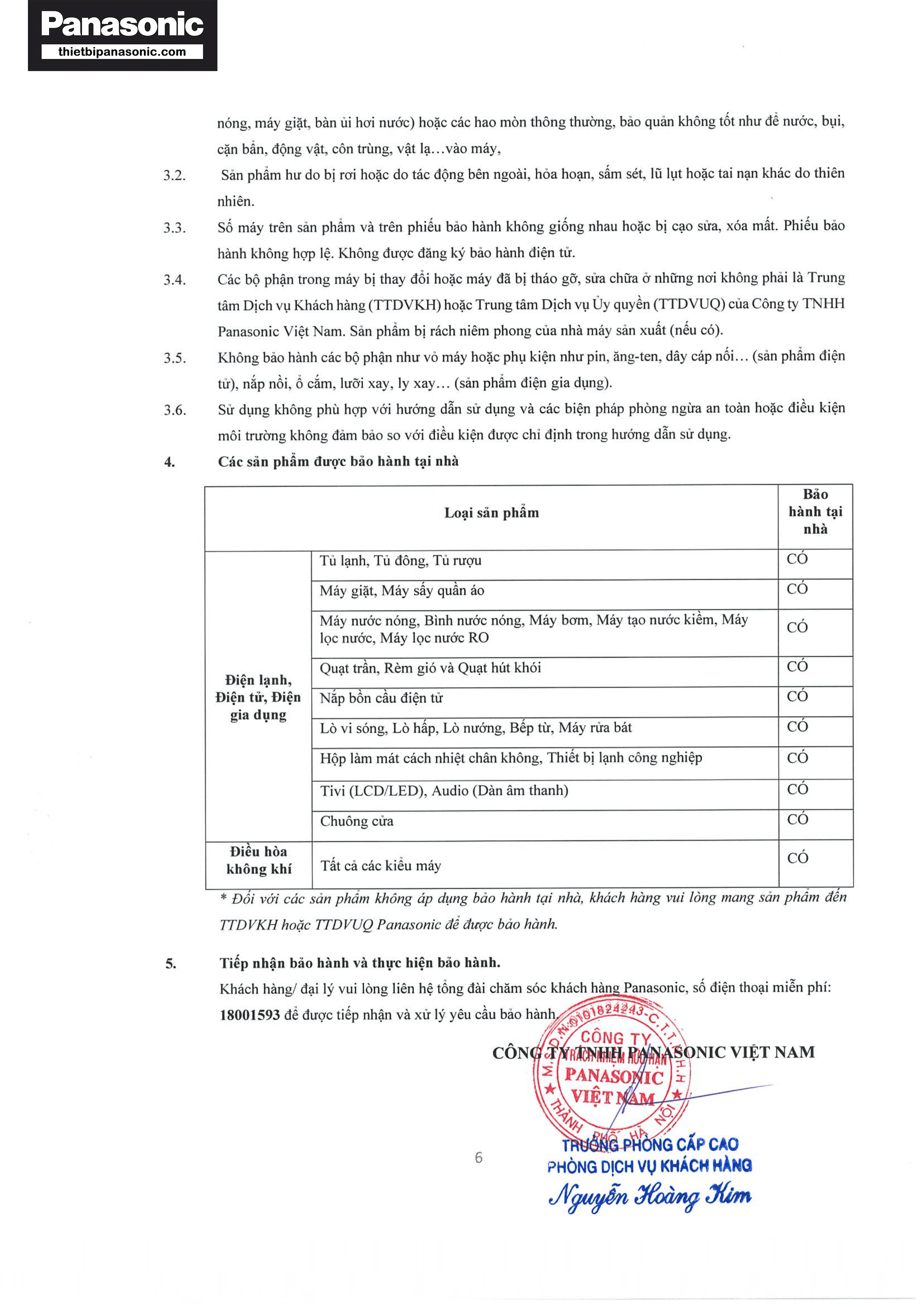 Chính sách bảo hành Panasonic năm 2023-2024 (Trang 6/6)