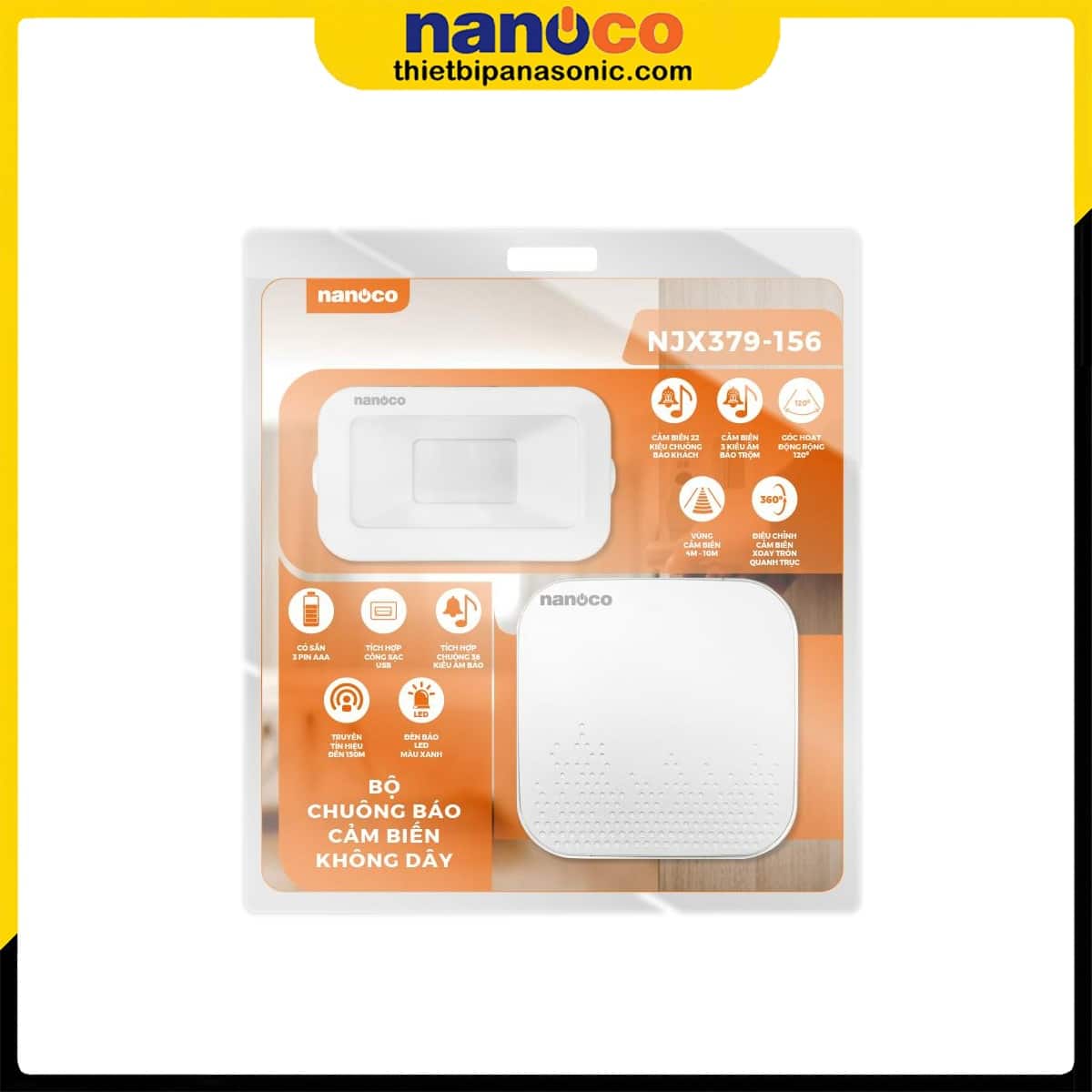 Bộ chuông báo cảm biến không dây Nanoco NJX379-156 được đóng gói vỉ treo tiện lợi