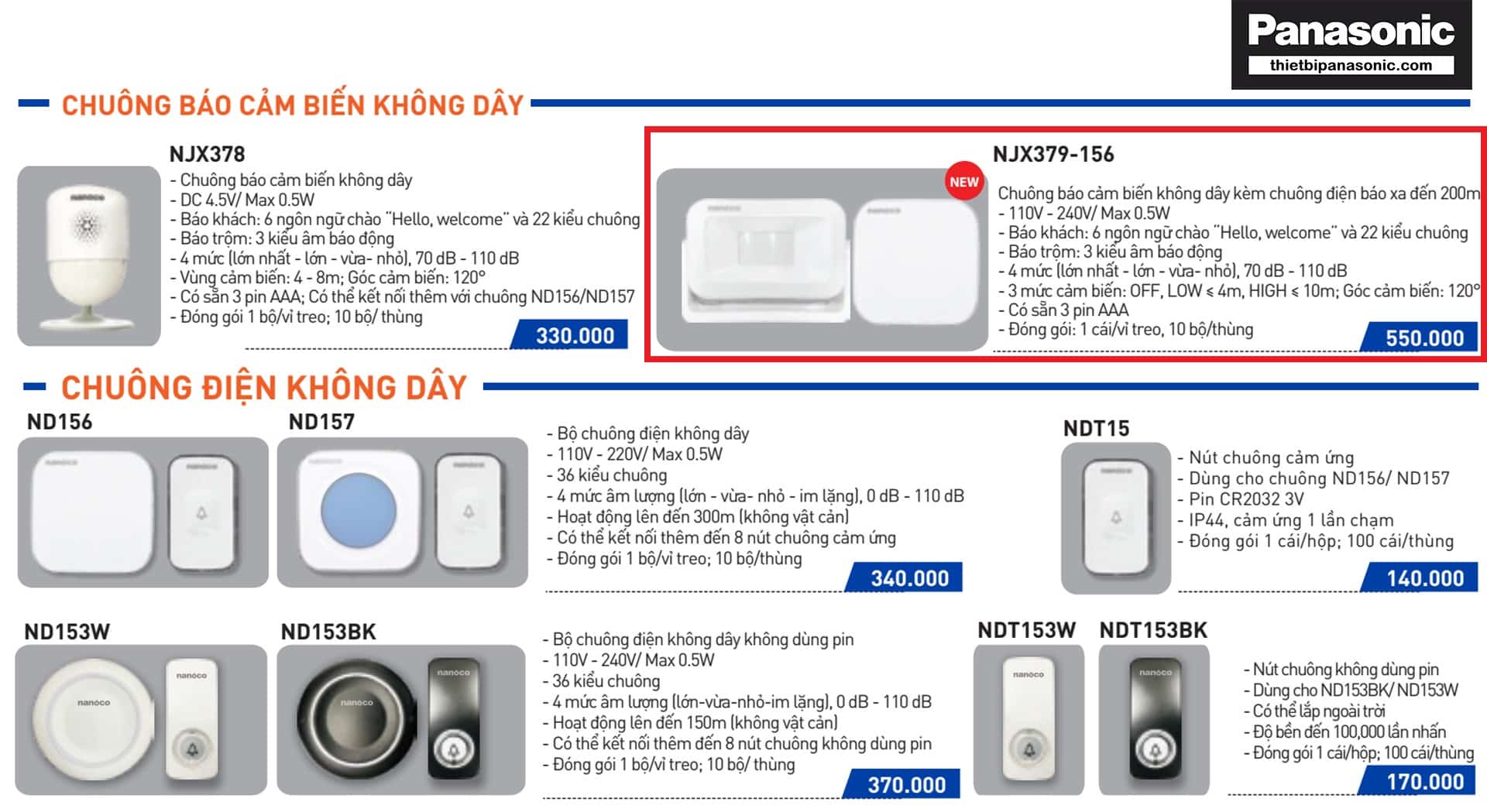 Trang web thietbidiennanoco.vnđại lý cấp 1 của Panasonic tại TPHCM, chuyên cung cấp các sản phẩm chính hãng của Panasonic, đặc biệt là bộ chuông cảm biến không dây Nanoco NJX379-156.
