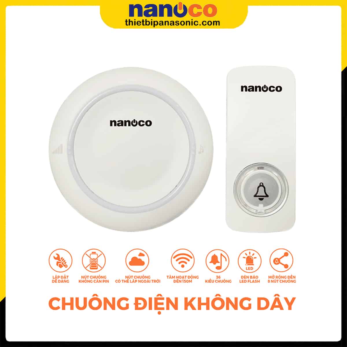 2 | Chuông điện không dây Nanoco ND156 Màu Trắng