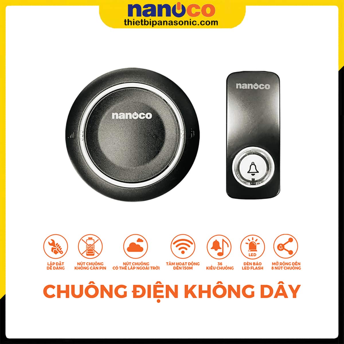 4 | Chuông điện không dây Nanoco ND153BK Màu đen