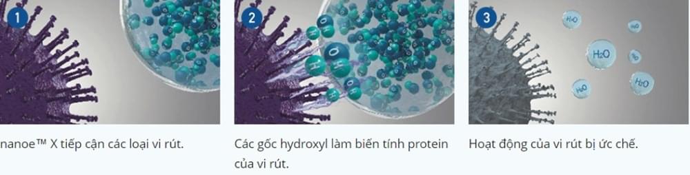- Bước 4: công nghệ NanoeX lúc này sẽ được tiếp cận với các virút, vi khuẩn có trong không khí