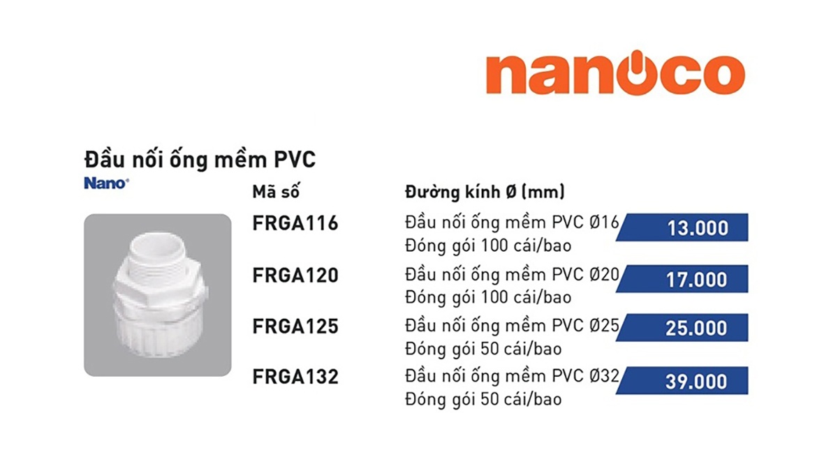 Đèn gương Panasonic, Bếp điện từ Nanoco, Bếp hồng ngoại Nanoco, Bình đun siêu tốc Nanoco, Bình thủy điện Nanoco, Bóng đèn LED Filament Panasonic, Co nối Nanoco, Đầu giảm Nanoco, Đầu nối ống mềm Nanoco, Đầu và khớp nối ren Nanoco, Dây cáp đồng trục Nanoco, Dây cáp mạng CAT5e Nanoco, Dây cáp mạng CAT6 Nanoco, Dây điện thoại và báo cháy Nanoco, Đèn bắt muỗi Nanoco, Đèn gắn tường Nanoco, Đèn LED bán nguyệt Nanoco, Đèn LED dây Nanoco, Đèn LED dây Panasonic, Đèn LED khẩn cấp Nanoco, Đèn LED Linear, Đèn LED Panel Nanoco, Đèn Pin đội đầu Nanoco, Đèn thoát hiểm Exit Nanoco, Đèn tuýp LED Nanoco, Hộp âm Hộp nổi Nanoco, Hộp nối 1 ngã Nanoco, Hộp nối 2 ngã Nanoco, Hộp nối 3 ngã Nanoco, Hộp nối 4 ngã Nanoco, Hộp nối dây Nanoco, Kẹp đỡ ống luồn dây điện chữ C Nanoco, Kẹp ống Omega Nanoco, Khớp nối trơn PVC Nanoco, Lò xo uốn ống Nanoco, Mặt thiết bị Nanoco, Máy hút ẩm Nanoco, Máy sưởi dầu Nanoco, Nắp đậy hộp nối tròn Nanoco, Nẹp luồn dây điện vuông Nanoco, Nồi chảo Nanoco, Ổ cắm Phích cắm đơn Nanoco, Ống luồn dây điện tròn Nanoco, Ống ruột gà HDPE Nanoco, Ống ruột gà luồn dây điện xoắn PVC Nanoco, Phụ kiện dùng cho HB Nanoco, Quạt hút sưởi Nanoco, T nối ống luồn dây điện điện Nanoco, Tủ sấy quần áo Nanoco