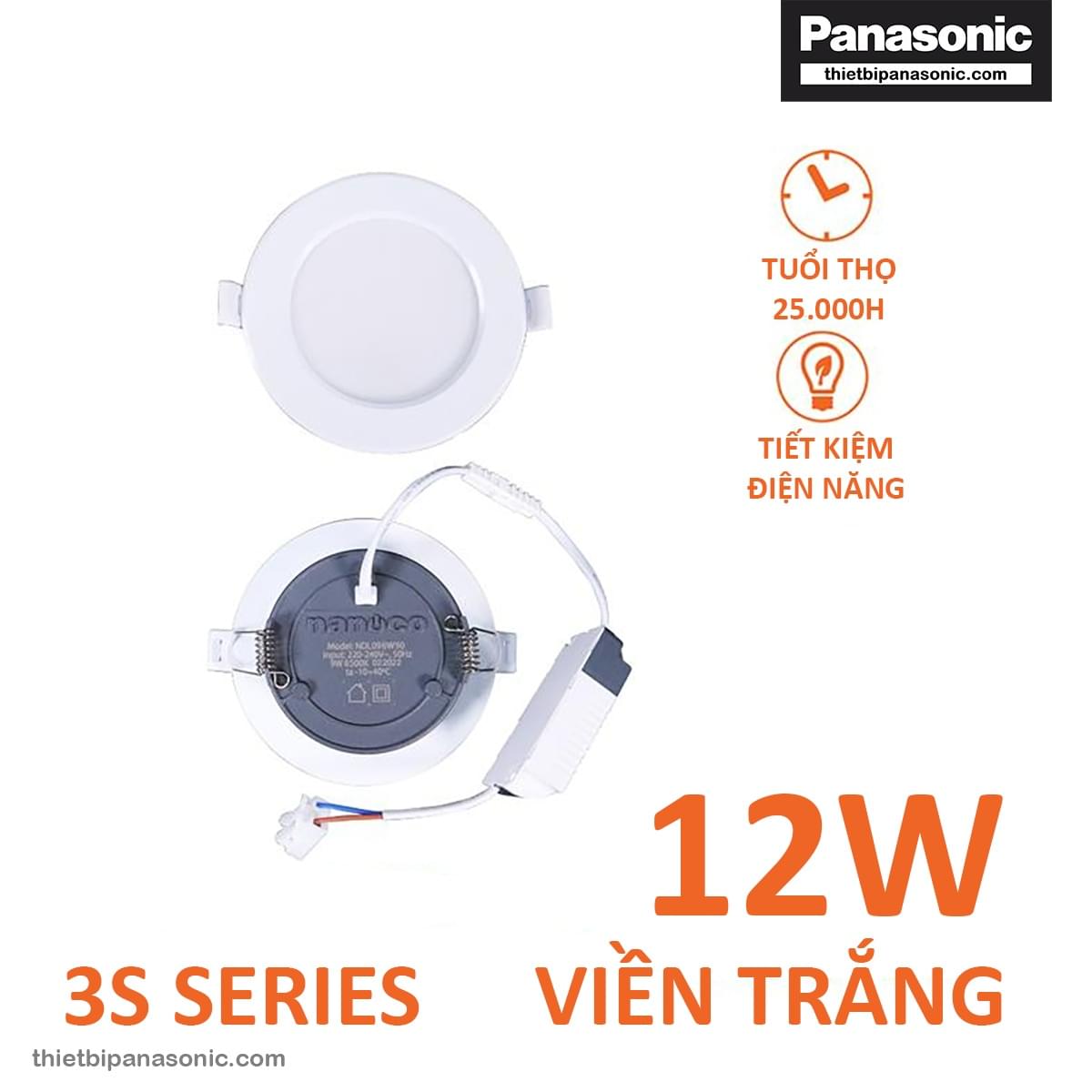 Đèn âm trần Nanoco 3S Series viền trắng 12W độ sáng cao