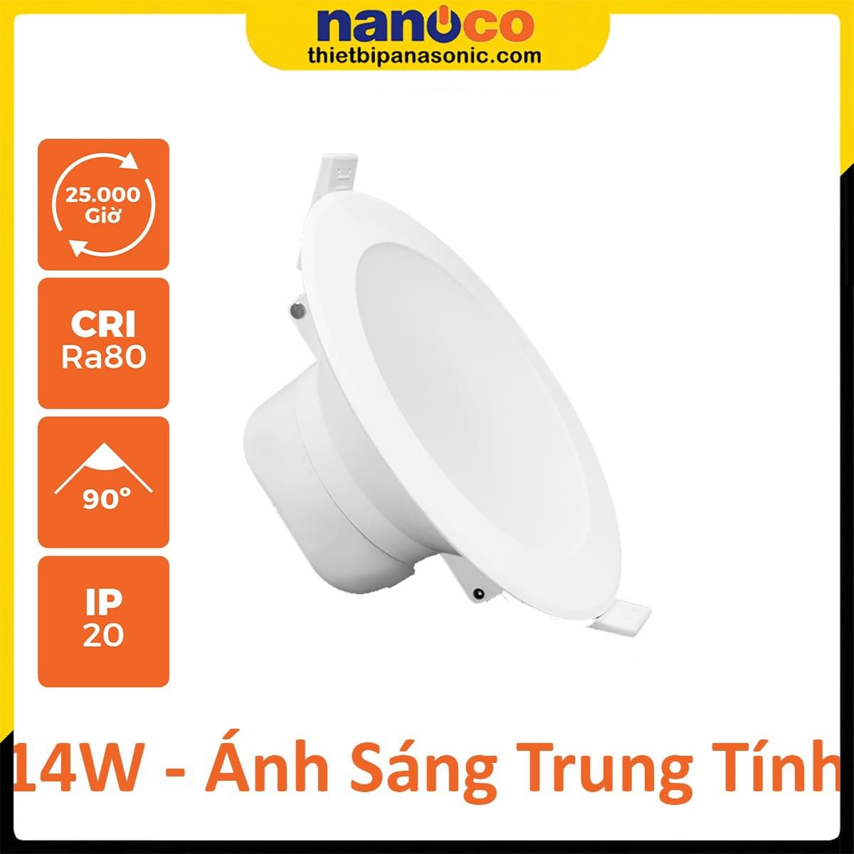 Đèn LED downlight Nanoco đế dày 14W ánh sáng trung tính NDL144