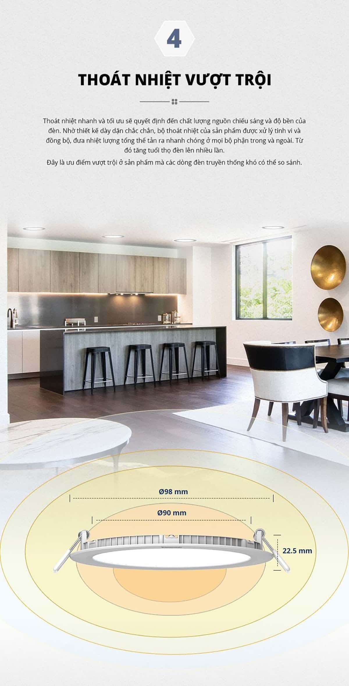 - Quang thông 450, 675, 900, 1200, 1440lm