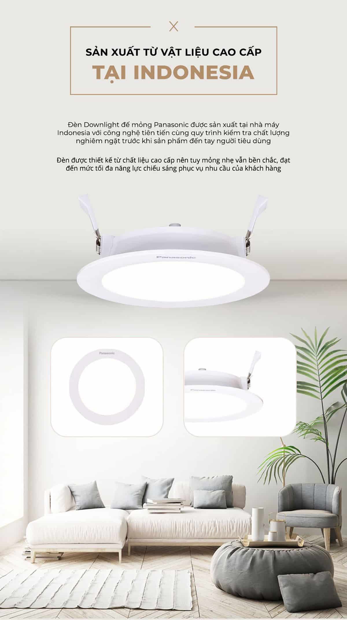Đèn downlight Panasonic Neo Slim đổi 3 màu | 9W (NNP72276), 12W (NNP73476), 15W (NNP74476) được sản xuất tại Indonesia với những chất liệu cao cấp nên tuy mỏngnhej vẫn bền chắc, đạt đến mức tối đa năng lực chiếu sáng phục vụ nhu cầu của khách hàng.