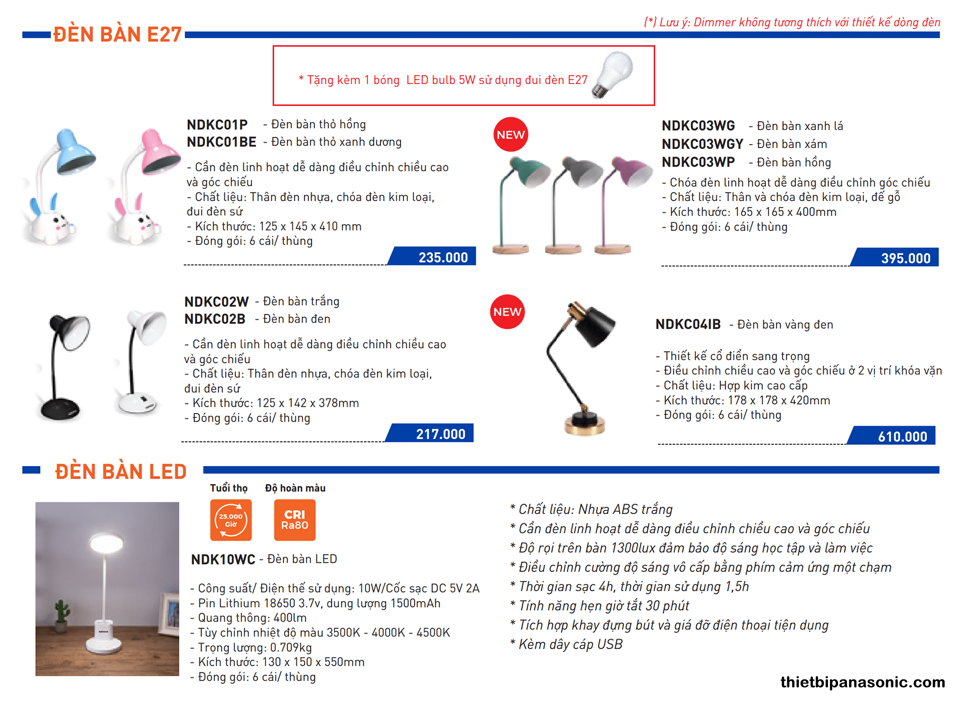Loại đèn LED Đèn bàn Nanoco, Đèn bàn Panasonic, Đèn học Panasonic