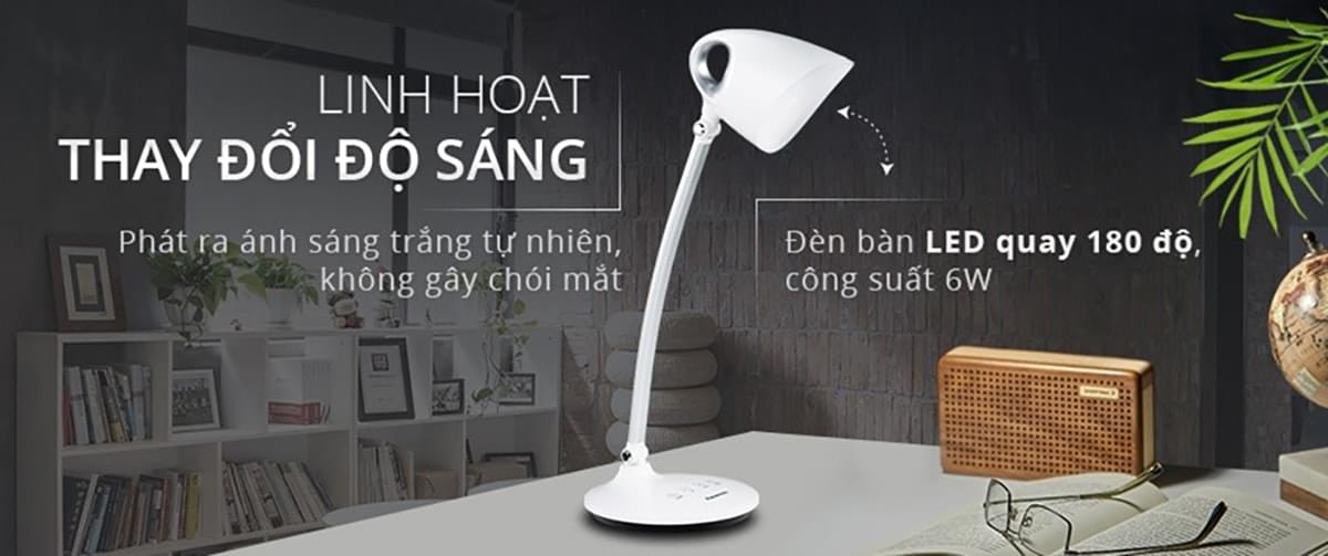 Với ánh sáng trung tính 4000K, công suất sáng lên đến 6W/0.05A/AC220-240V và quang thông 300lm, đèn bàn luôn cho người sử dụng dòng ánh sáng dịu nhẹ và dễ chịu nhất.