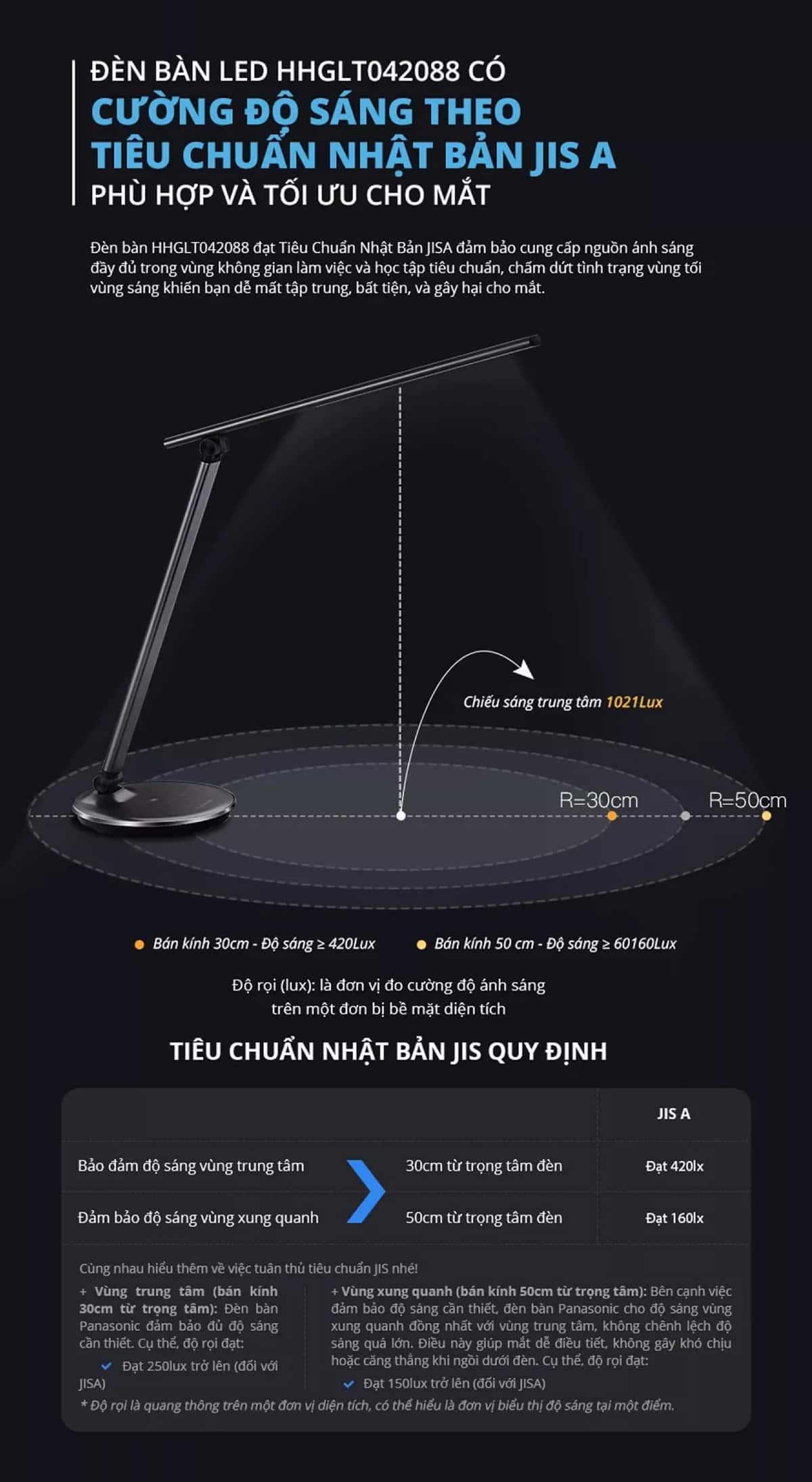 Đèn bàn LED Panasonic HHGLT042088 đạt chất lượng Nhật Bản theo tiêu chuẩn JIS A