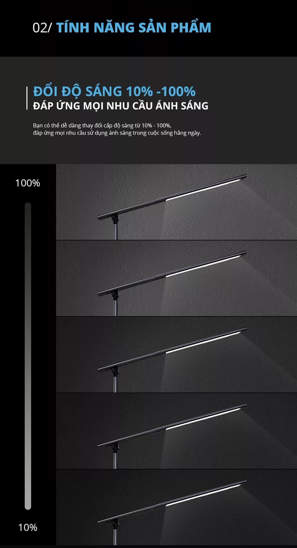 • Đổi độ sáng 0% -100%