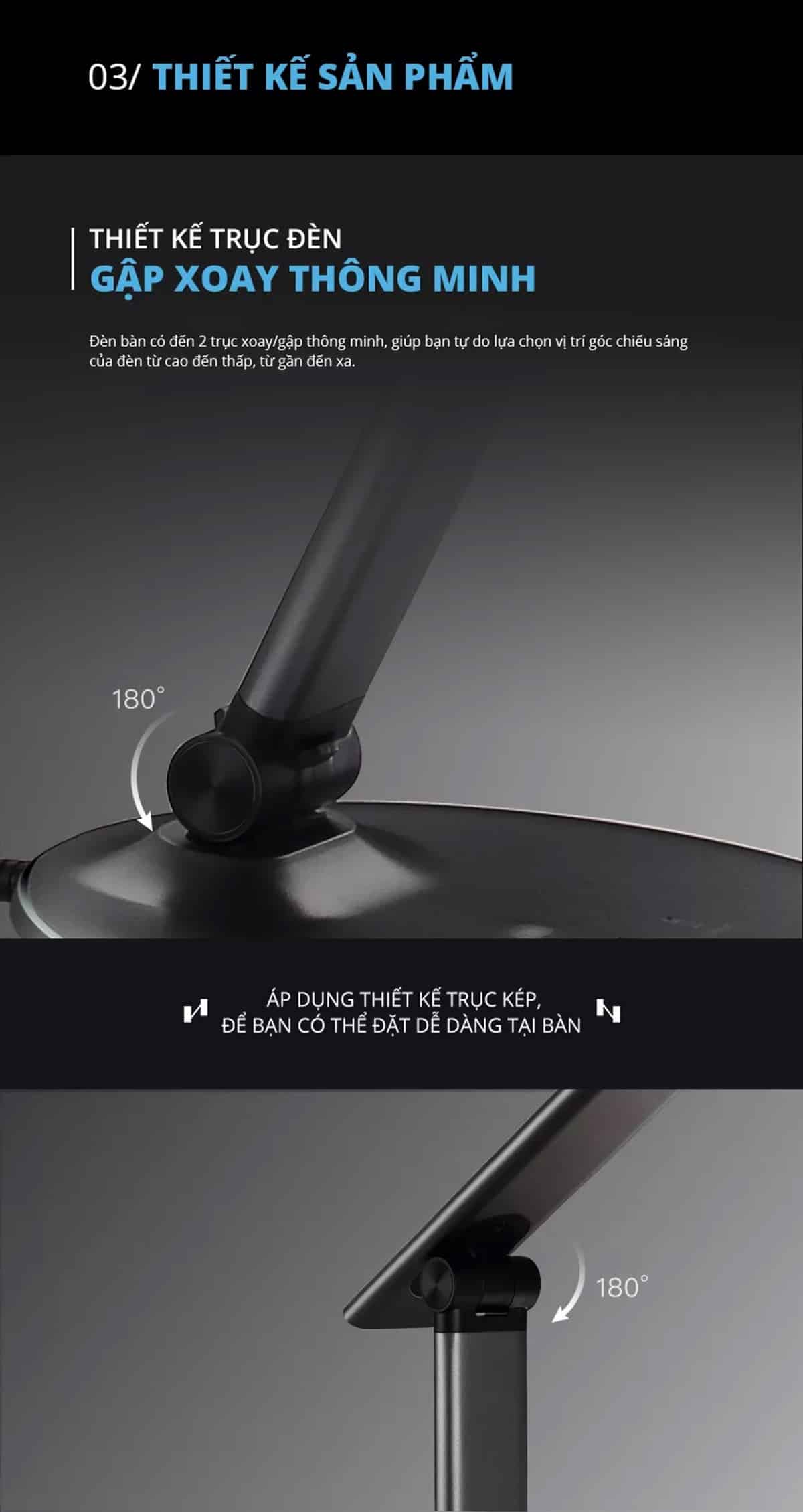• Trục đèn gập/ xoay thông minh