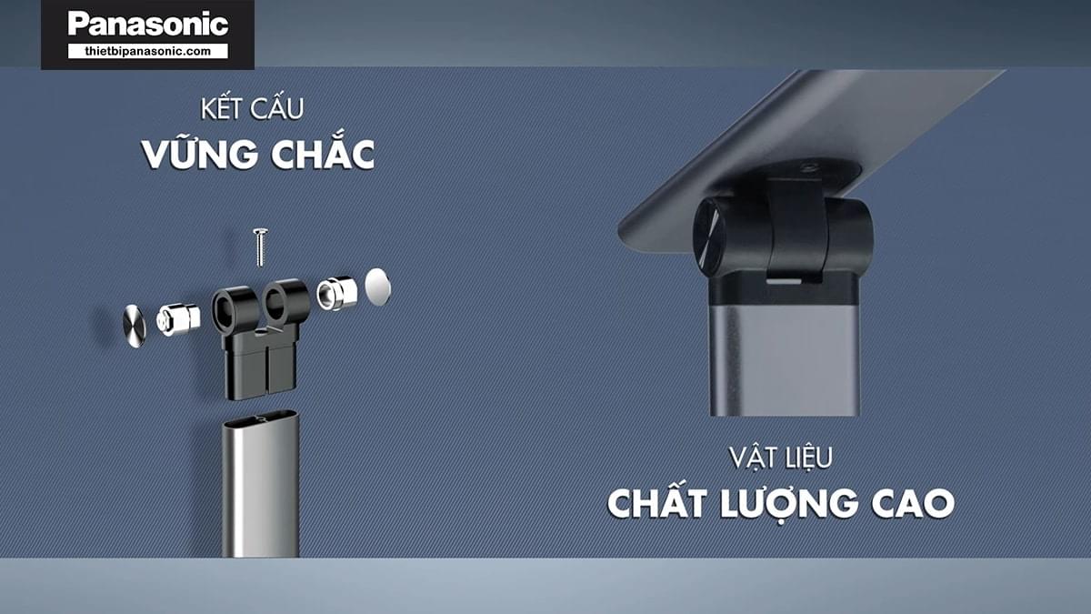 Đèn bàn Panasonic HHGLT042088 được làm từ nhoom cao cấp, không chỉ mang lại vẻ sang trọng, tươi sáng cho sản phẩm mà còn đảm bảo độ bền bỉ theo thời gian. Ngoài ra, chất liệu nhôm và nhựa ABS khó bám bẩn, dễ lau chùi nên đèn luôn sáng bóng như mới.