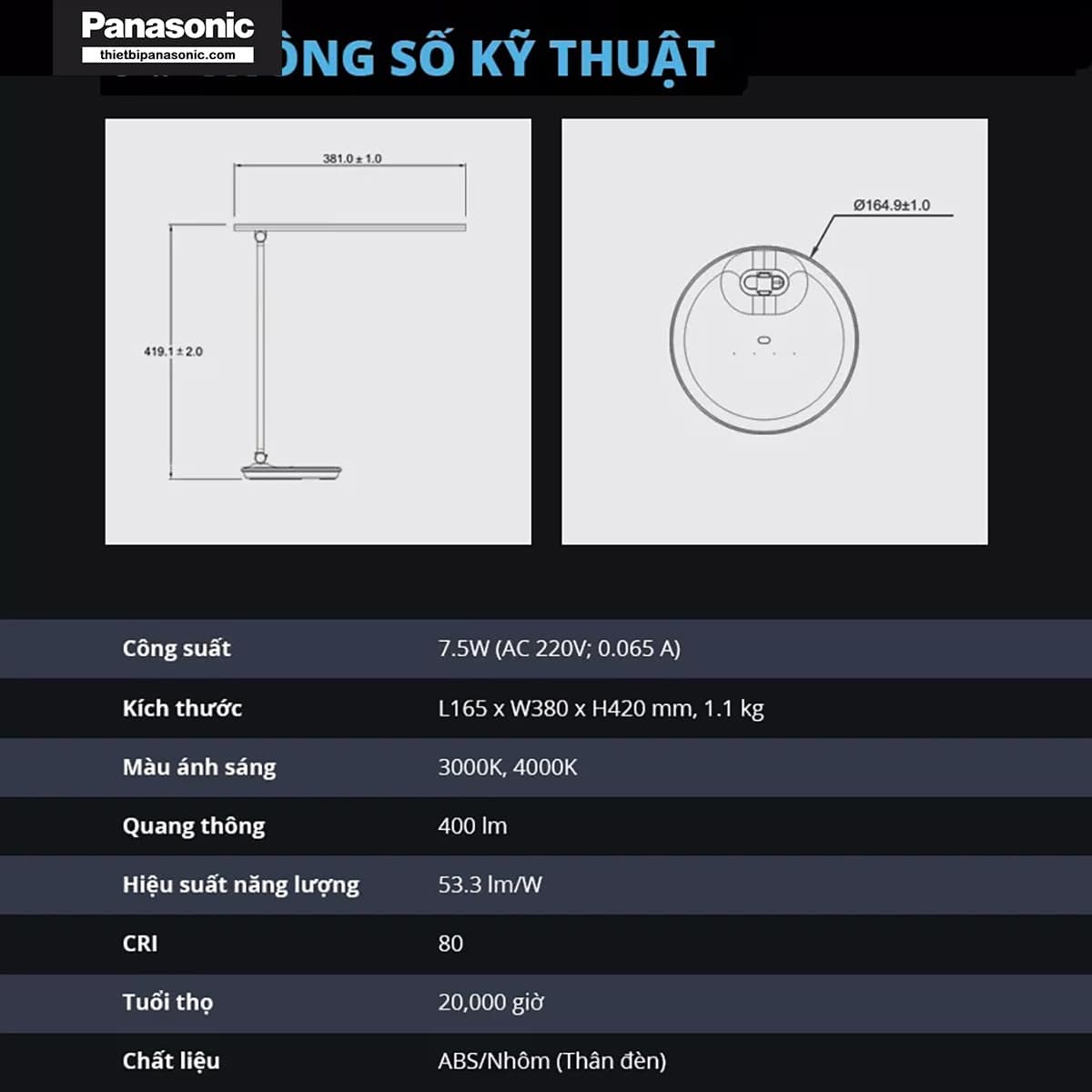 Thông số kỹ thuật của Đèn bàn LED Panasonic HHGLT042088