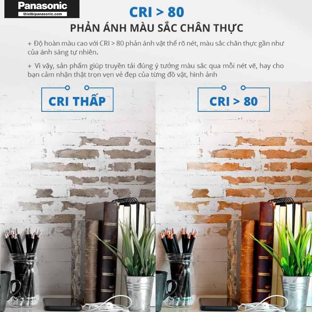 Với độ hoàn màu CRI 80, đèn bàn Panasonic HHGLT0629U19 cung cấp nguồn sáng ổn định, tự nhiên, phản ánh vật thể sắc nét, màu sắc chân thực gần như tuyệt đối. Hơn nữa, đèn còn cho phạm vi nguồn sáng rộng, ít bị đổ bóng và bị phản chiếu.