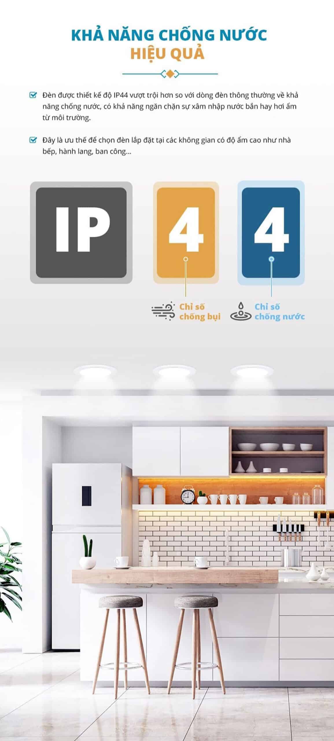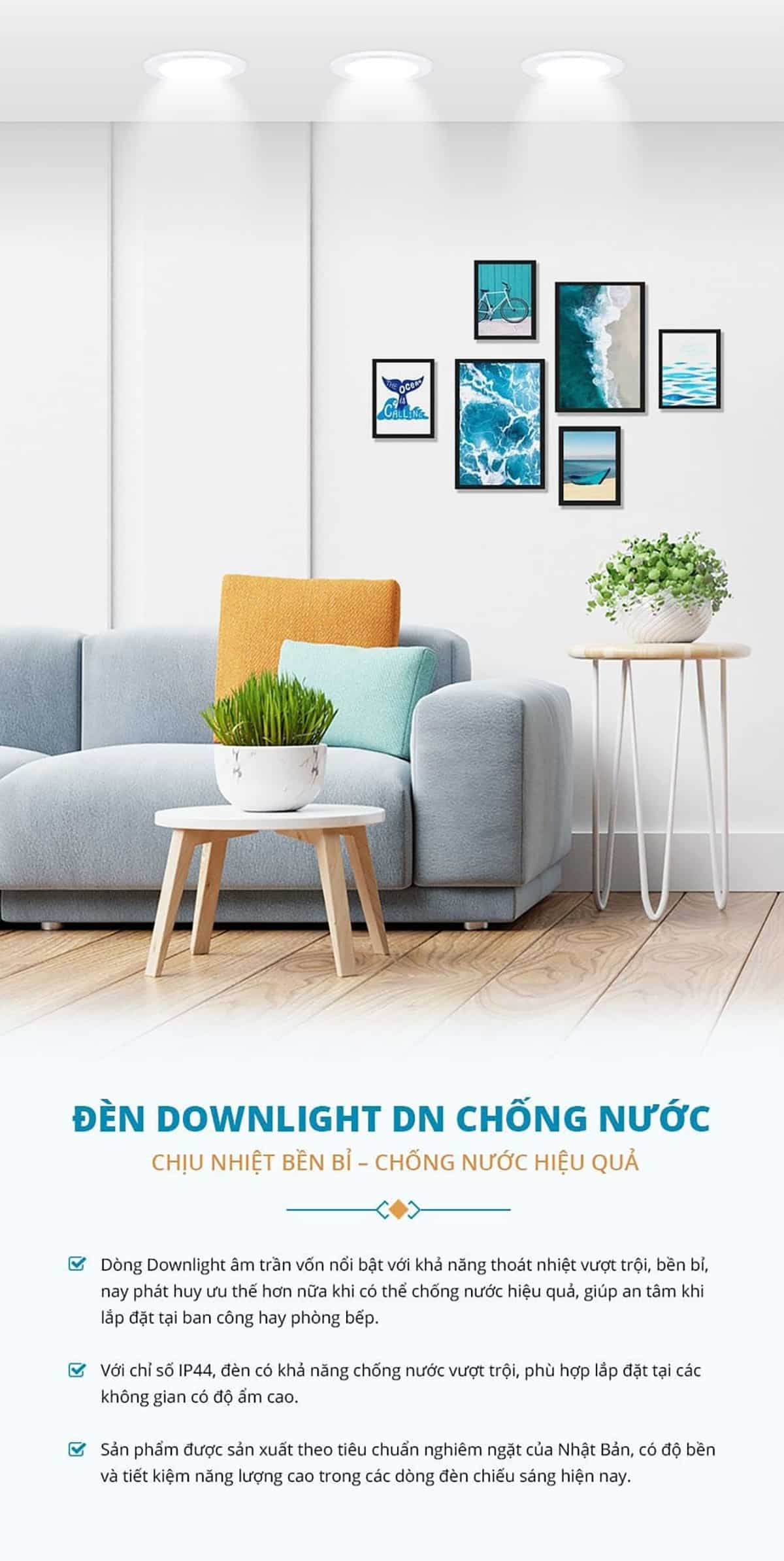 | Dòng đèn âm trần | DN 2G (Không ánh sáng xanh), Chống nước |