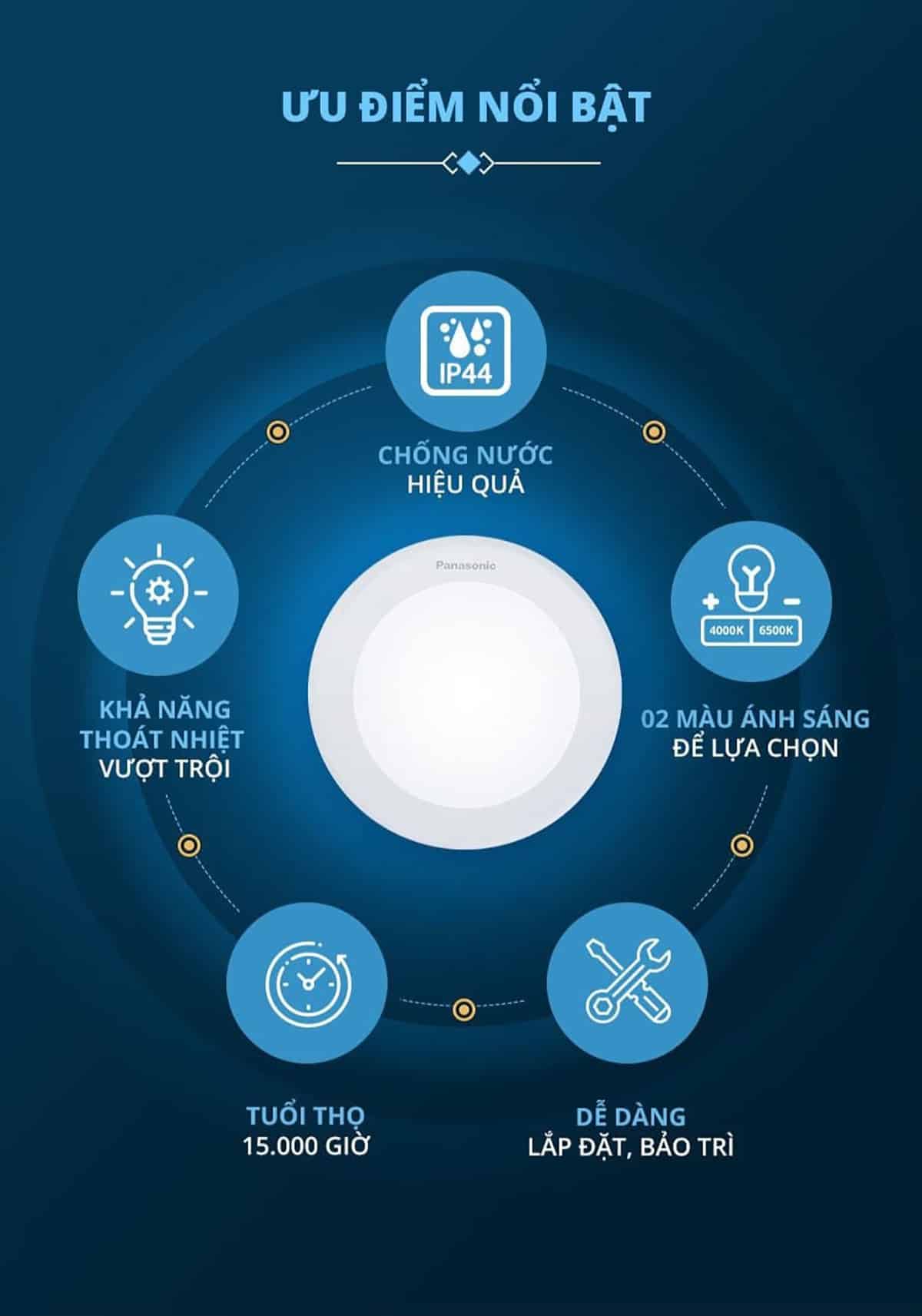 Để hiểu hơn về Đèn LED âm trần chống nước Panasonic, hãy cùng xem qua những đặc điểm nổi bật dưới đây.