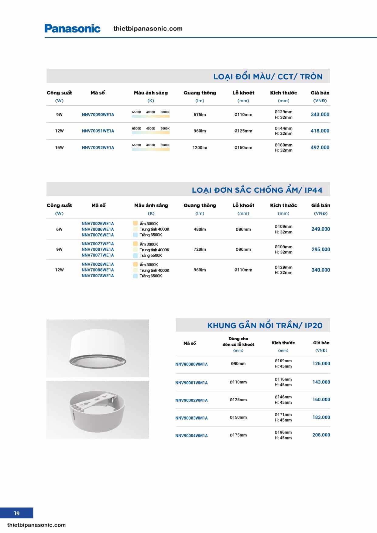 Đèn LED âm trần 12W, Đèn LED âm trần 6W, Đèn LED âm trần 9WĐèn LED âm trần chống ẩm Panasonic 6W, 9W, 12W