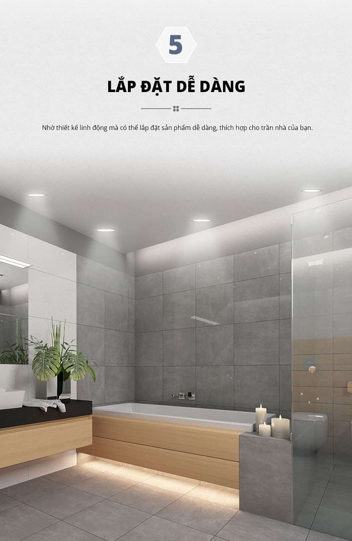 Đèn downlight Panasonic EZ-M Series đổi 3 màu được thiết kế thông minh với viền đèn cong ôm sát trần nhà, cho phép lắp đặt âm trần, tạo được hiệu ứng liền khối, giúp không gian rộng hơn, đặc biệt phù hợp với những không gian nhà nhỏ, có cấu trúc trần thạch cao, đơn giản mà không kém phần tinh tế sang trọng.