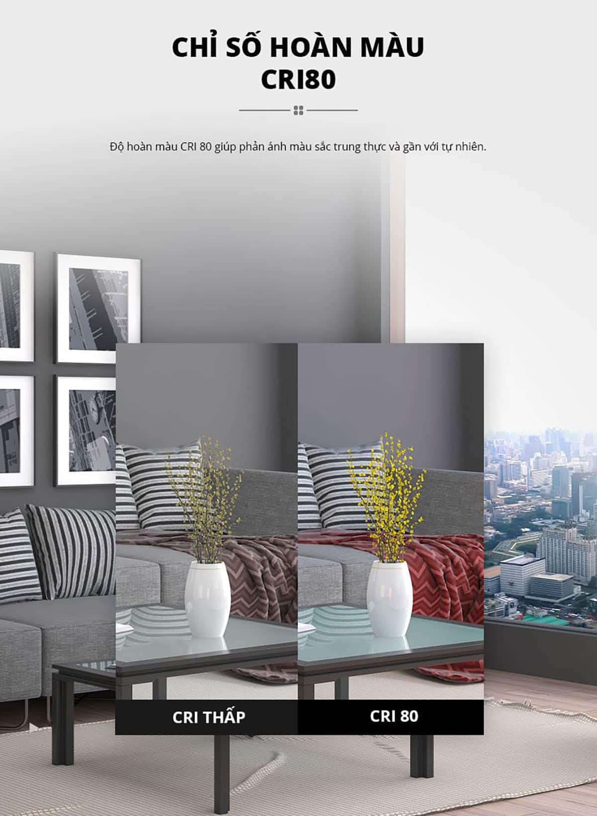 Sản phẩm này sử dụng đèn LED công nghệ mới với hiệu suất chiếu sáng cao hơn 25% so với các sản phẩm cùng loại, đồng thời tăng tuổi thọ bóng đèn lên đến 20.000 giờ chiếu sáng mà không bị suy giảm chất lượng khi vào cuối vòng đời.