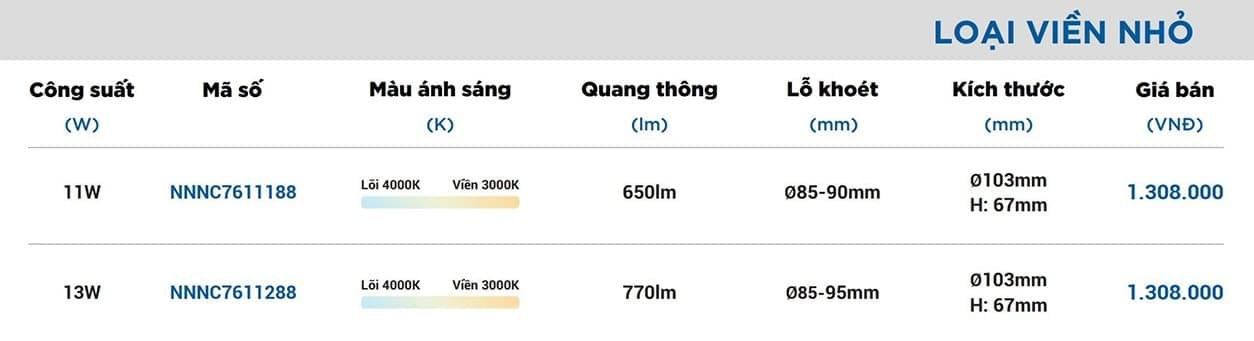 - Đèn downlight Panasonic LGP Series 11W viền nhỏ NNNC7611188