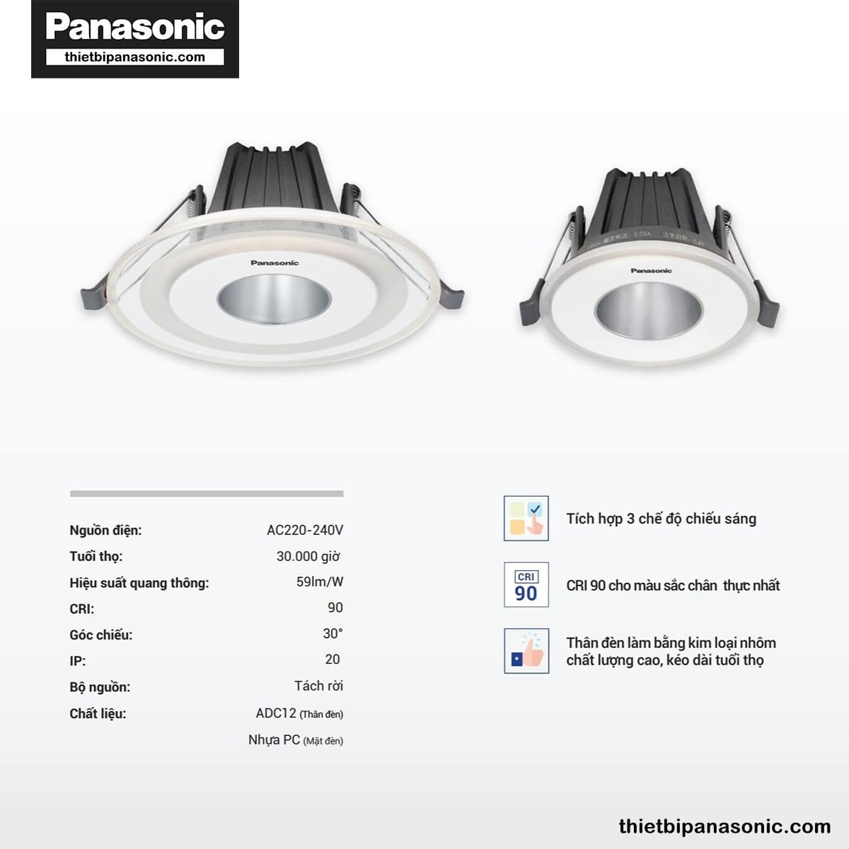 | Kích thước lỗ khoét | Ø85-90mm, Ø85-95mm |
